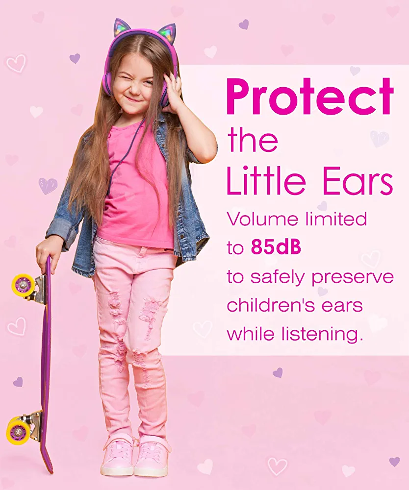 [VIBRANT LED LIGHTS] The headphones feature vibrant LED cat ears that can be turned on in two different modes – always on or continuously flashing. Your child can light up the room and groove to the beat of their favorite music.