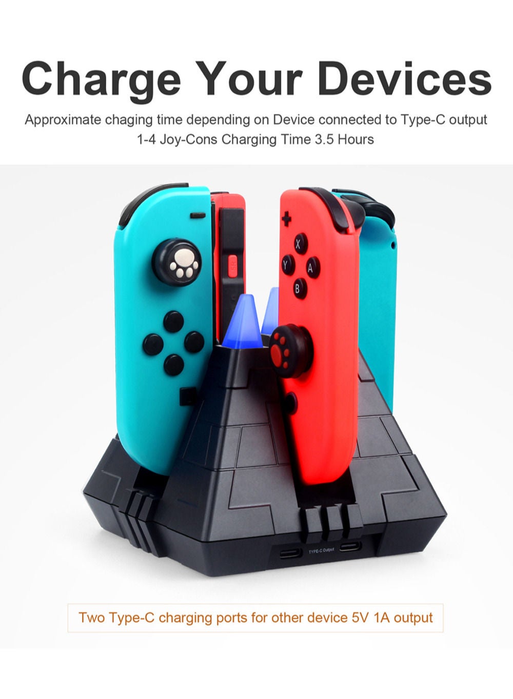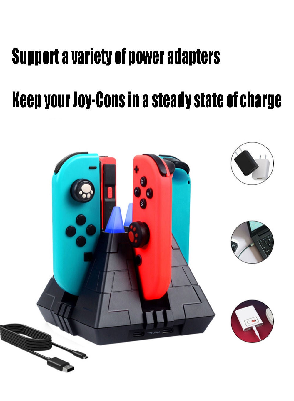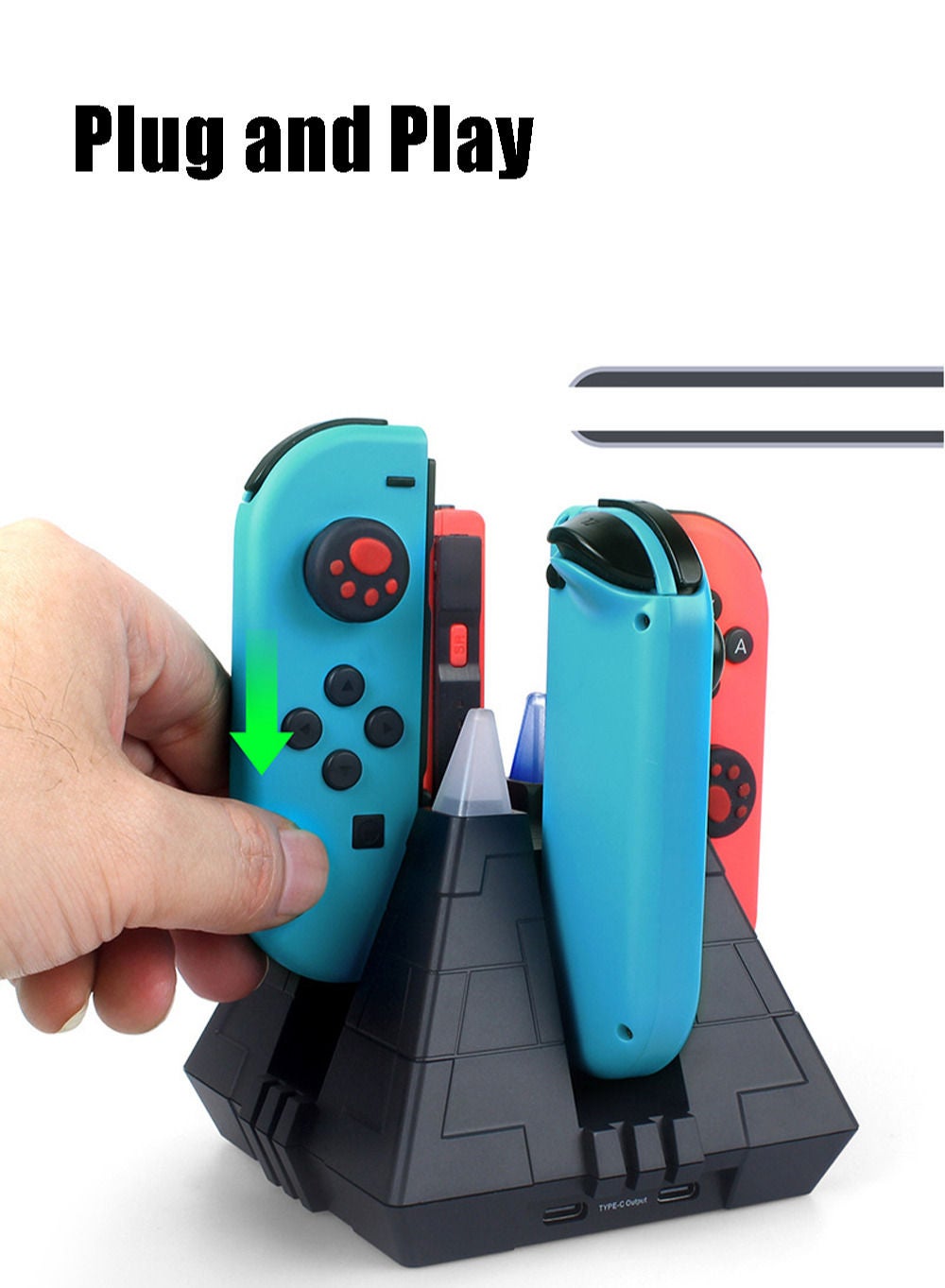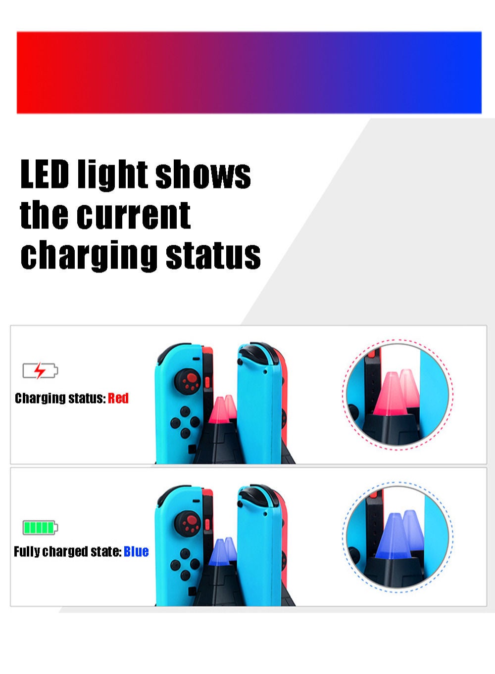 With four charging ports, you can charge up to four Joy-Con controllers at once, ensuring that you and your friends never run out of battery during those intense gaming sessions. The LED lights on the base indicate when your controllers are fully charged, so you can easily keep track of their battery levels.