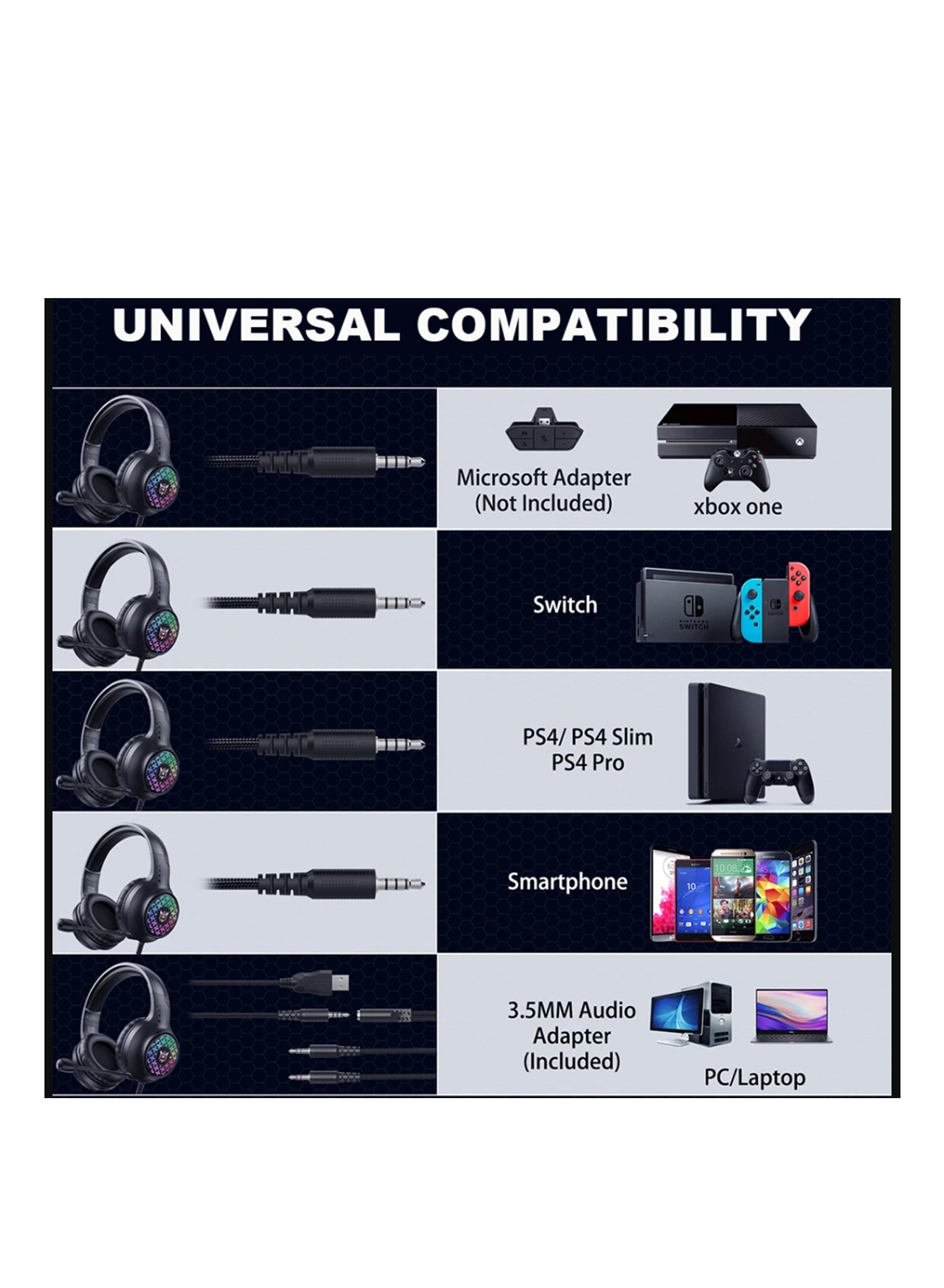 Introducing our Over-Ear LED Wired Gaming Headphones with Mic, the ultimate gaming accessory for serious gamers. Designed to enhance your gaming experience, these headphones are compatible with PS4, PS5, XOne, XSeries, NSwitch, and PC, making them a versatile choice for all your gaming needs.