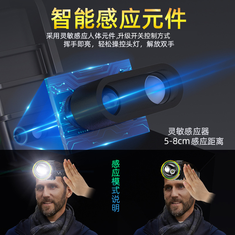 LED Headlight Strong Light Charging Super Bright Induction Xenon Head-mounted Outdoor Flashlight Fishing Special Night Fishing Miner's Lamp