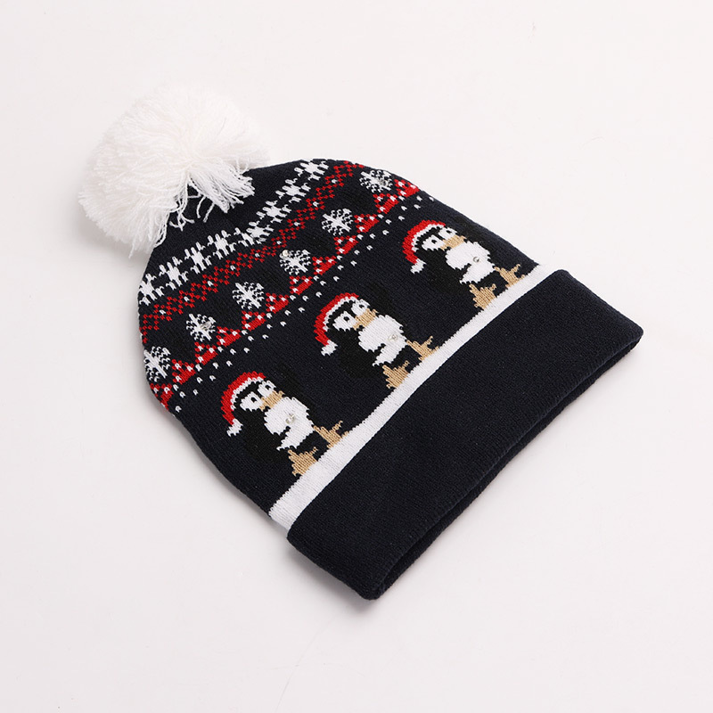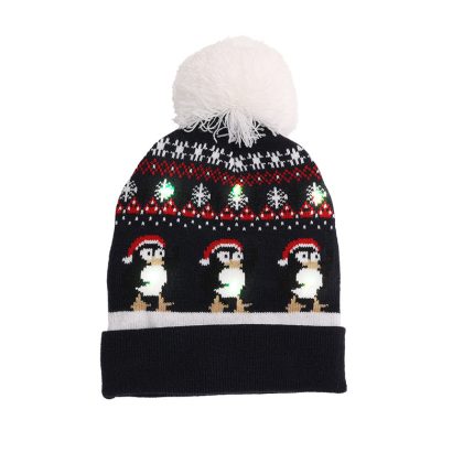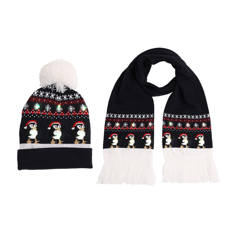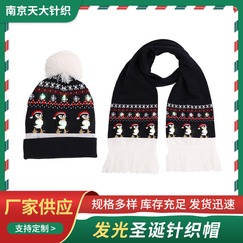 Led light glowing Christmas hat Black Snowflake penguin cartoon pattern fur ball matching Christmas scarf spot supply