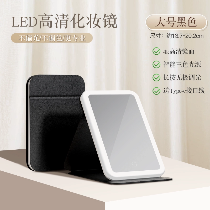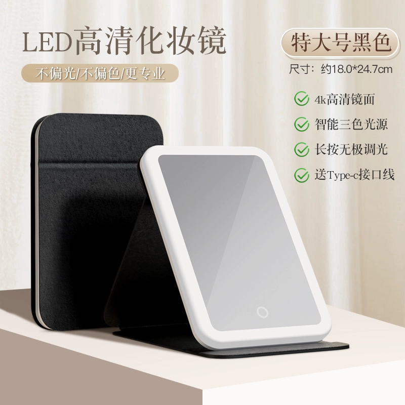 LED makeup mirror with light home dressing table folding smart high-definition Internet celebrity portable desktop small mirror