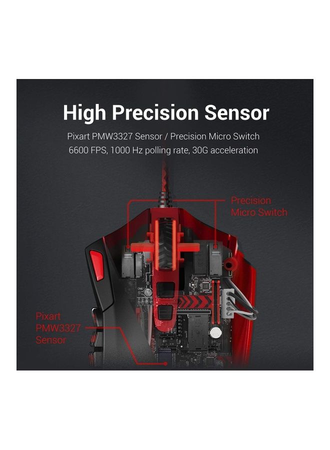 The M901 Perdition 12400 DPI MMO LED RGB Wired Gaming Mouse is the ultimate tool for gamers who demand precision and customization. With a whopping 12400 DPI, this mouse offers unparalleled accuracy and speed, allowing you to react quickly and decisively in even the most intense gaming situations. The MMO design features 18 programmable buttons, giving you complete control over your gameplay and allowing you to customize your mouse to suit your individual needs. The LED RGB lighting adds a touch of style to your setup, while the wired connection ensures a stable and reliable connection. Whether you’re a casual gamer or a professional esports player, the M901 Perdition 12400 DPI MMO LED RGB Wired Gaming Mouse is the perfect choice for anyone who takes their gaming seriously.