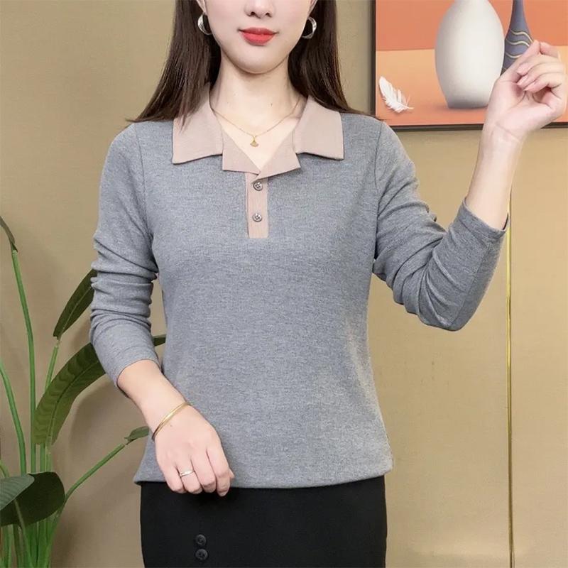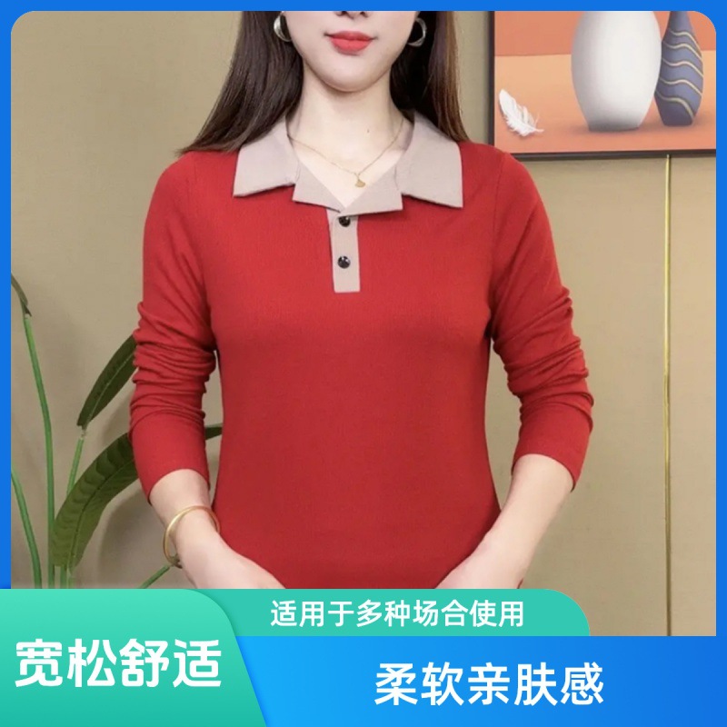 Led T-shirt Women’s Long-sleeved 2024 Spring and Autumn New T-shirt Fashionable Contrast Polo Shirt Slimming Top Outer Wear Small Shirt