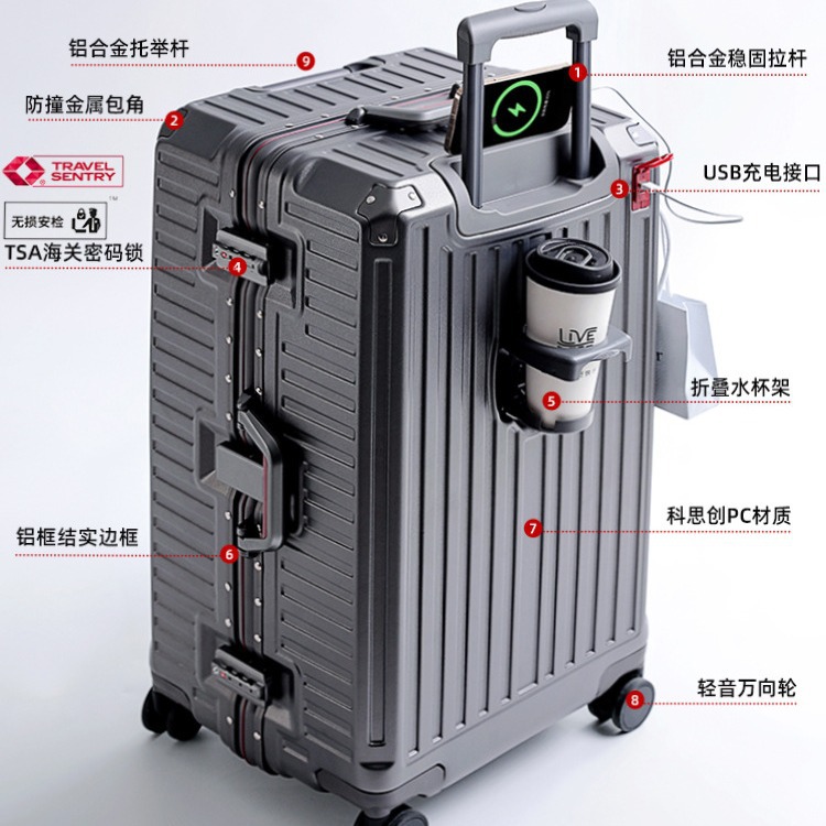 | nameOriginal | Lee Large Capacity Luggage Case Women's 20 Inch Boarding Trolley Case Aluminum Frame Universal Wheel Suitcase 30 Inch Password Luggage |