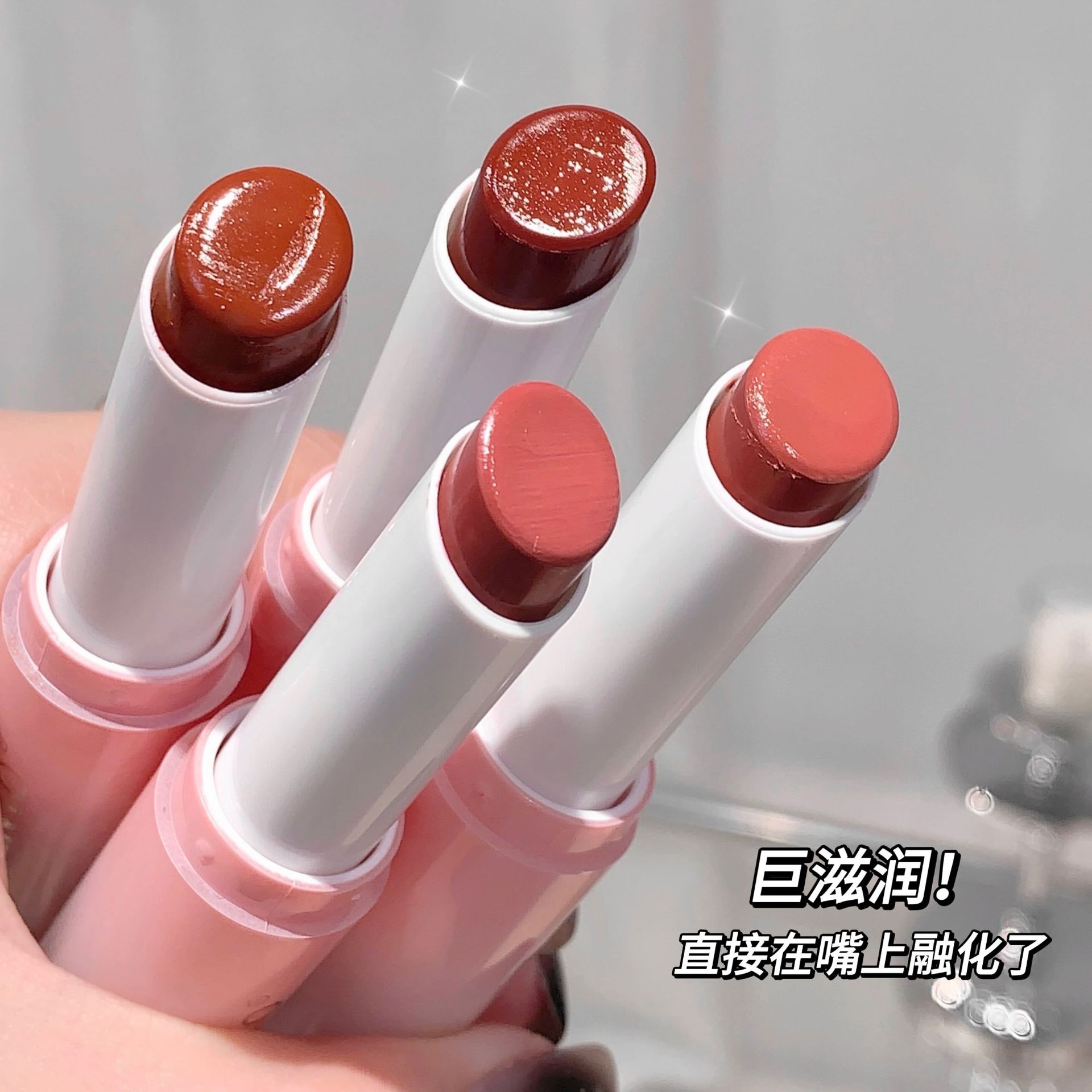 LEEINTO Qile peach crystal frozen lipstick moisturizing water light mirror Dudu lip holding makeup low saturation white lipstick
