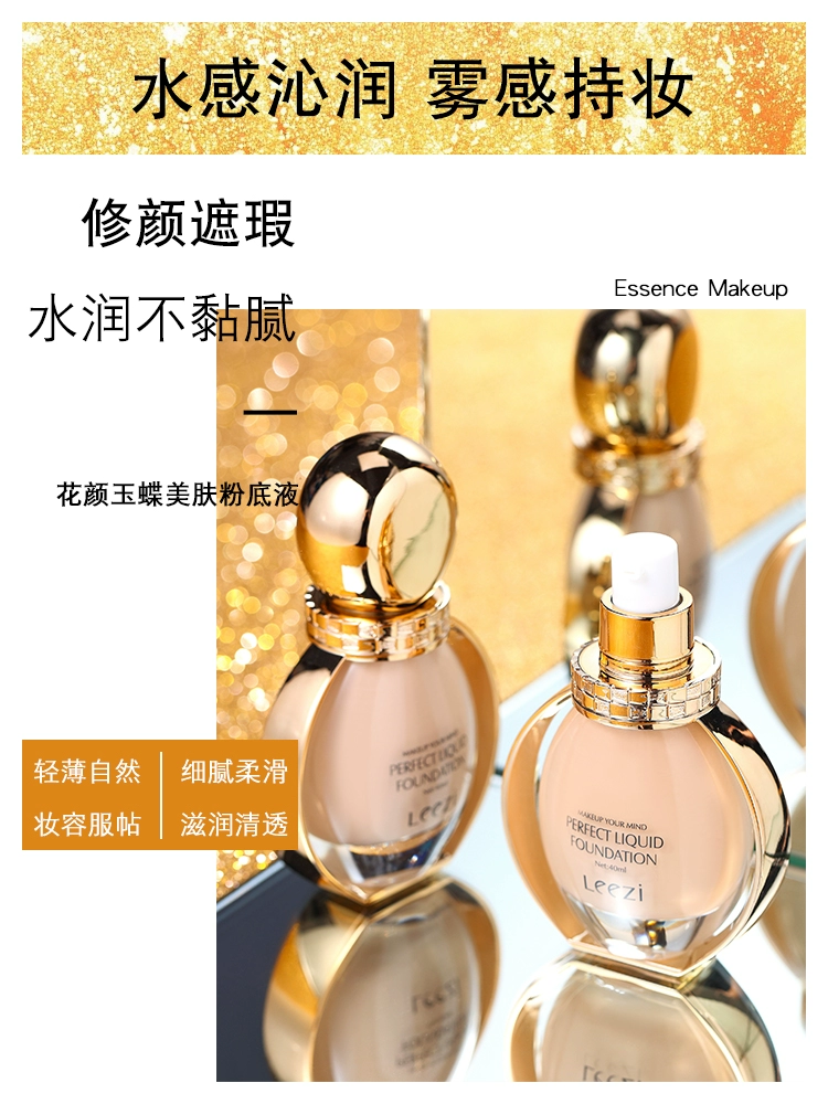 Leezi Huayan Jade Butterfly Liquid Foundation is long-lasting for dry and oily skin and does not take off makeup. Concealer BB is moisturizing and does not stick to powder.
