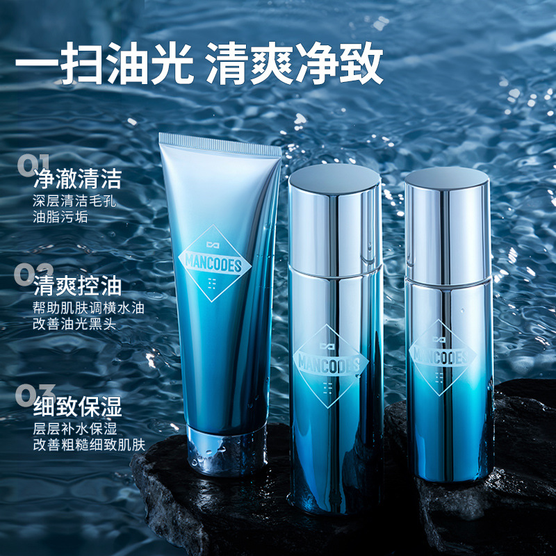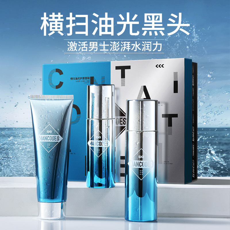 Left and Right color men’s skin care three-piece suit deep cleansing refreshing moisturizing balance water oil cleansing lotion