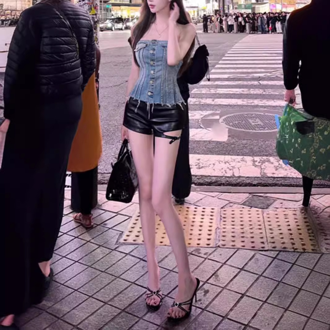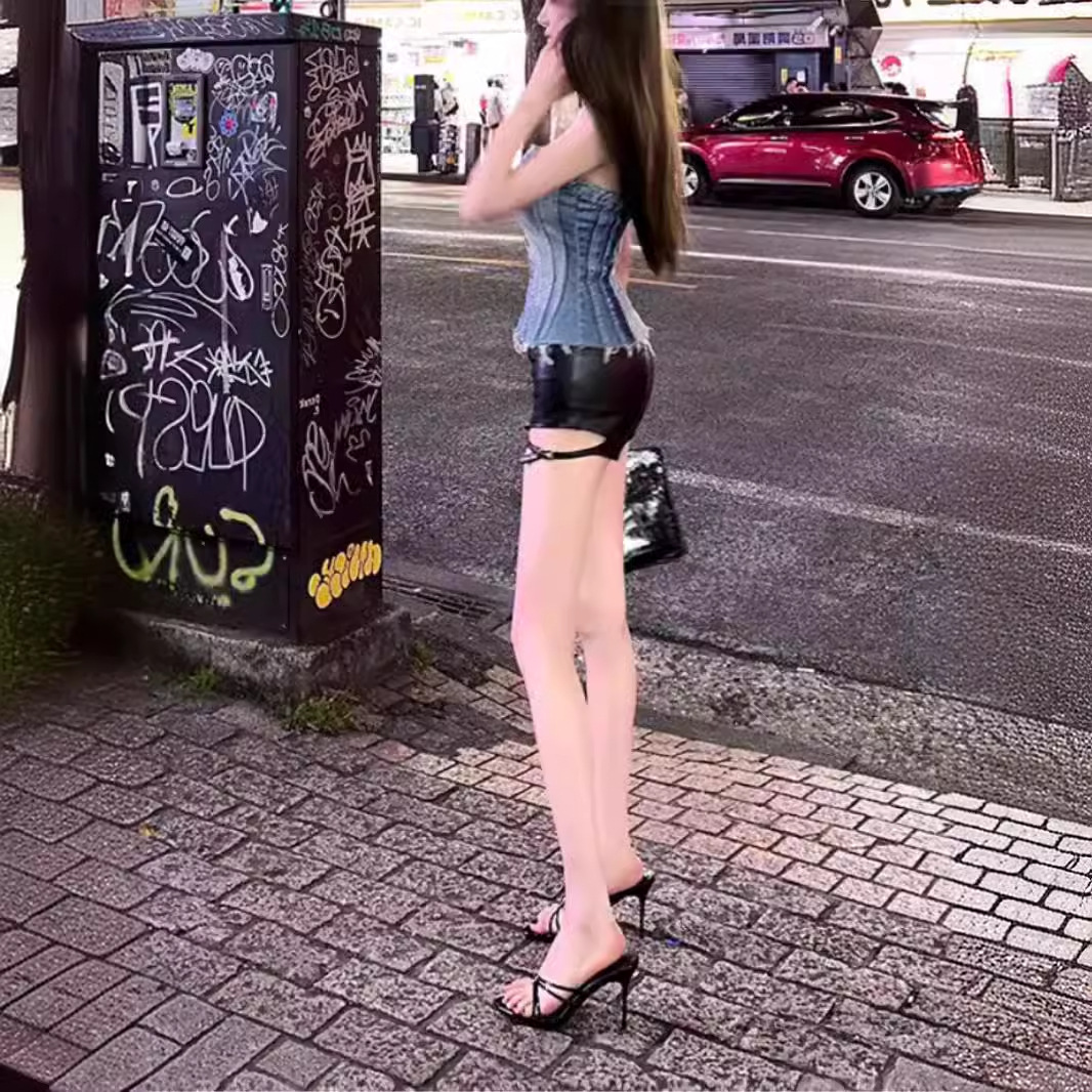 | nameOriginal | Leg formation department! Sexy Black High Waist Adjustable Buckle PU Leather Pants Hot Girl Shorts |