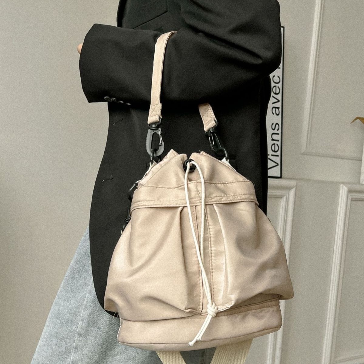 Leisure swimming bag large capacity nylon underarm bucket bag high-grade portable drawstring fitness bag shoulder messenger bag