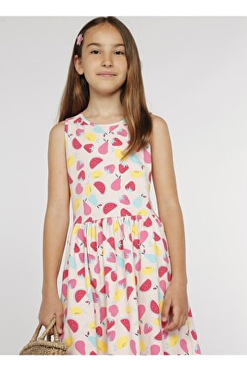 LEMON COMPANY Lemon Avril D1_22 Pink Crew Neck Above Knee Standard Fit Girls’ Patterned Dress