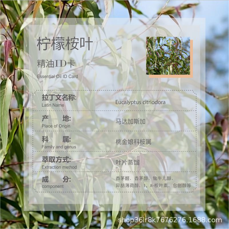 | nameOriginal | Lemon Eucalyptus Leaf Essential Oil Organic Lemon Eucalyptus Madagascar Aromatherapy Essential Oil Raw Material Wholesale |