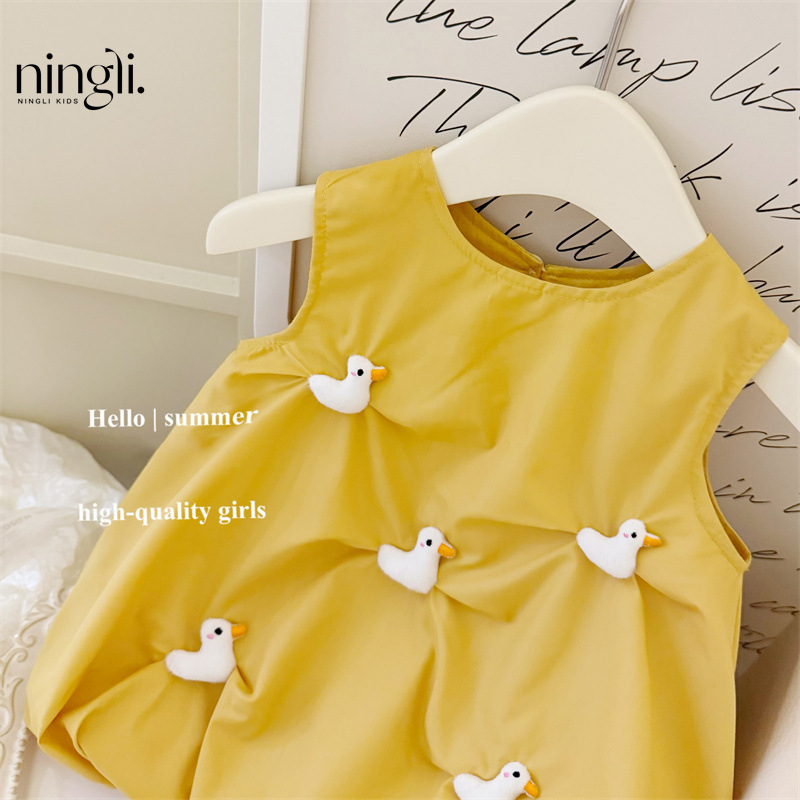Lemon Girl’s Hand-stitched Cotton Three-dimensional Doll Flower Bud Dress Spring and Summer Cute Fun Cute Cool Smart Dress Fashion