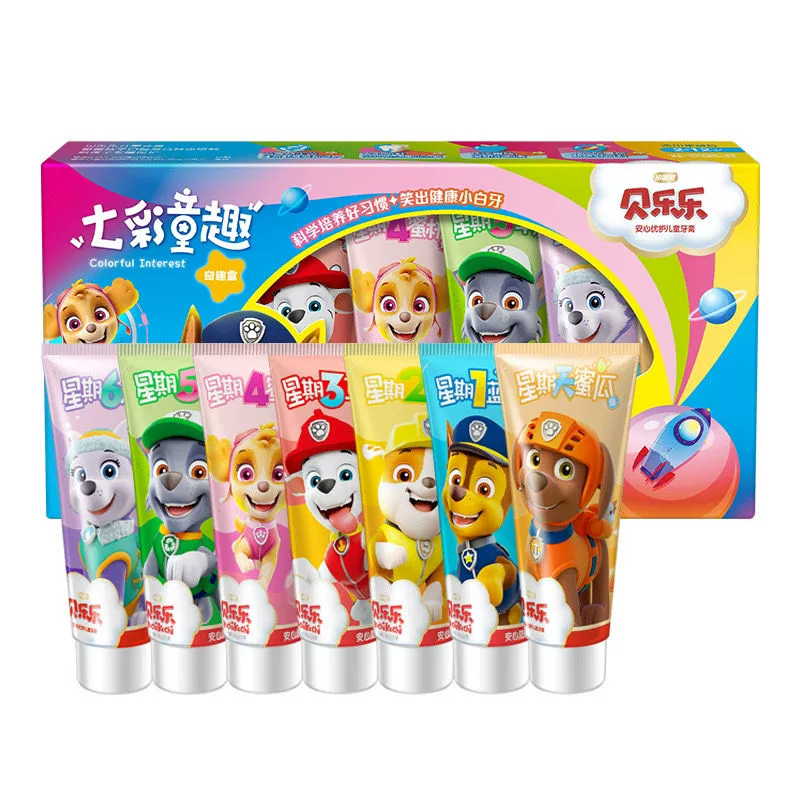 Lengsuanling Beilewangwang team jointly branded 7-color children’s toothpaste 2-12 years old fruity strawberry flavor, change the brush every day