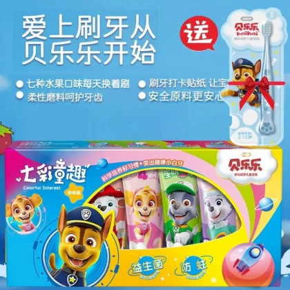 | nameOriginal | Lengsuanling Beilewangwang team jointly branded 7-color children's toothpaste 2-12 years old fruity strawberry flavor, change the brush every day |