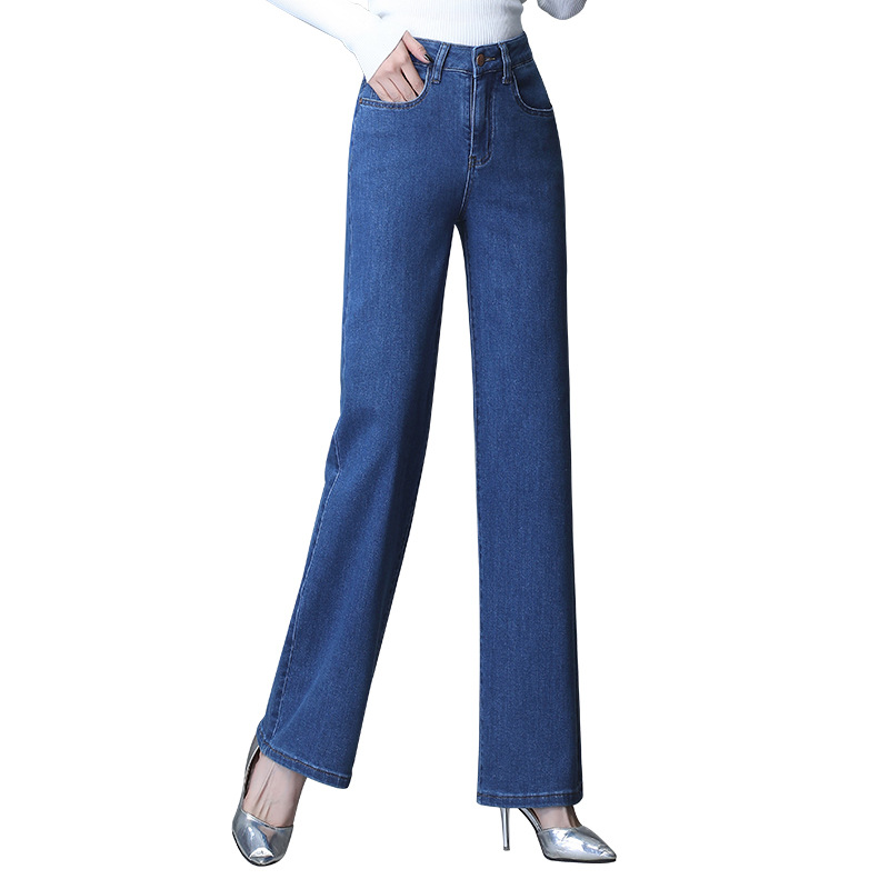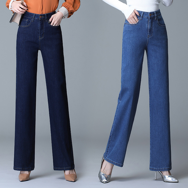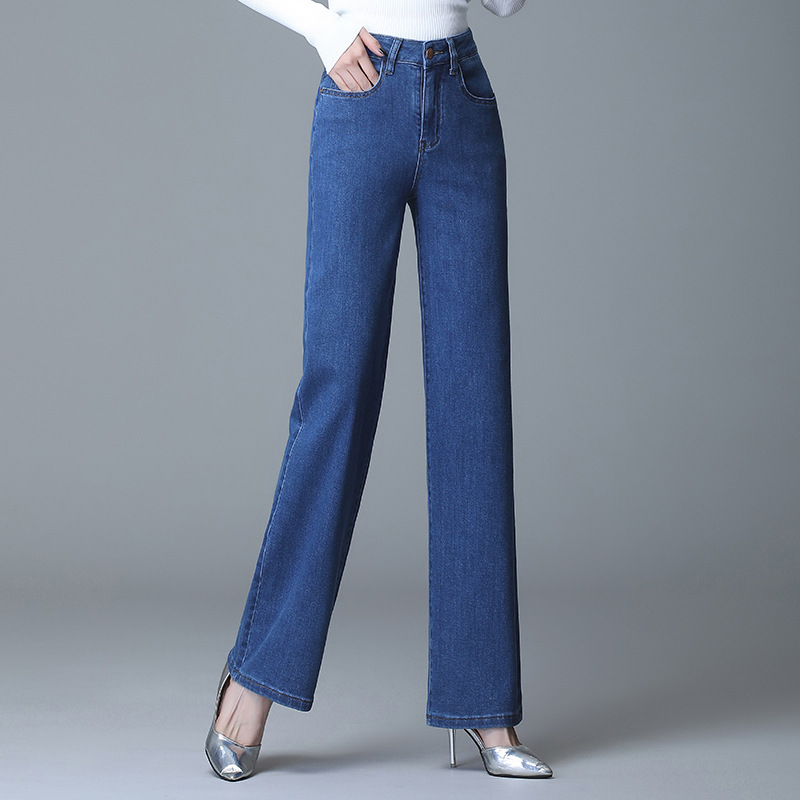 | nameOriginal | Lengthened Draping Wide Leg Jeans Women's High Waist Loose Slimming Elegant Straight Trousers Cotton Elastic Large Size Mom Pants |