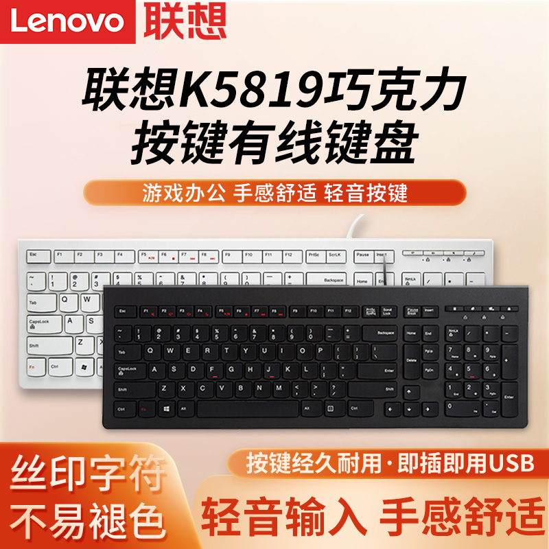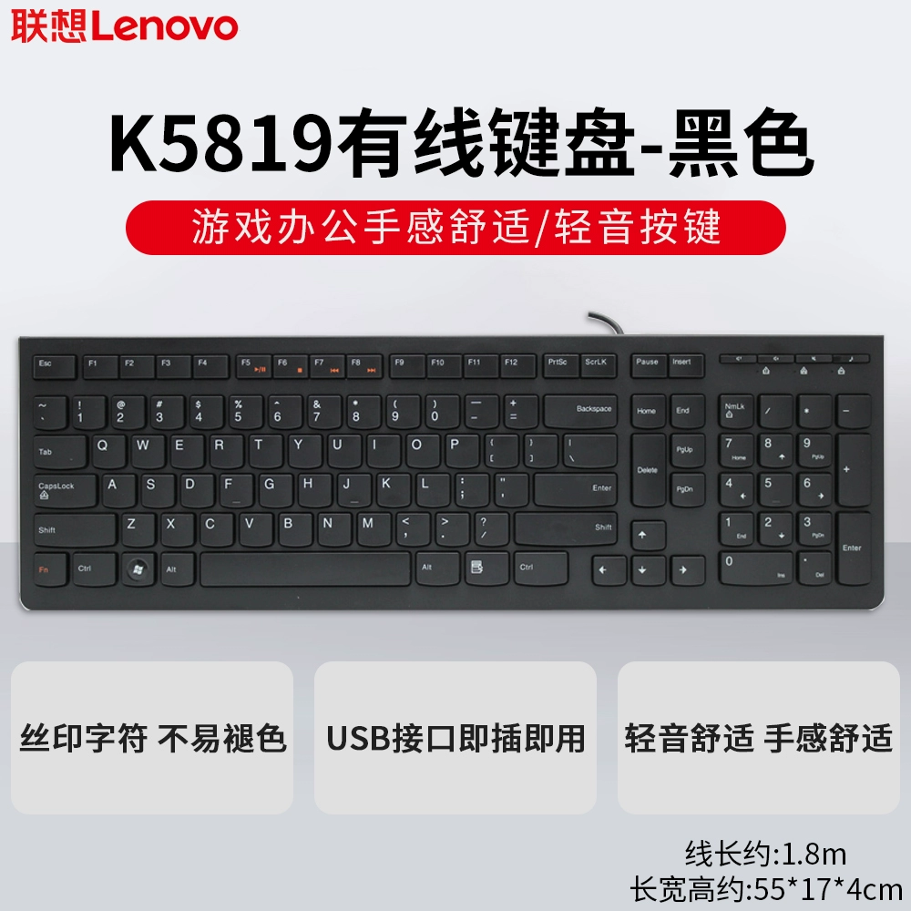 Lenovo K5819 keyboard wired girls' office computer e-sports game notebook external silent digital keyboard
