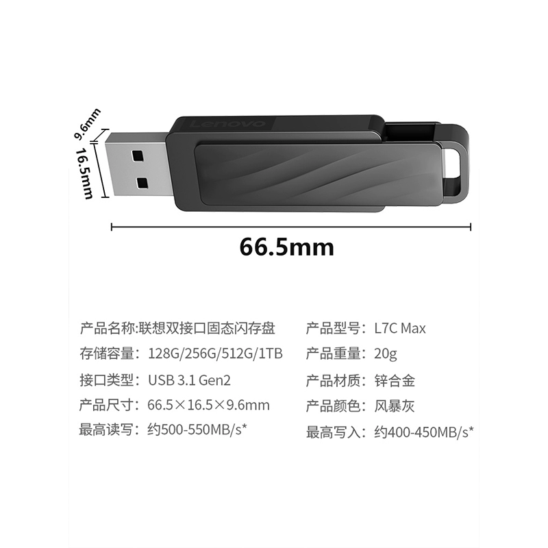 | nameOriginal | Lenovo L7C Max dual-interface solid-state flash drive 1T large-capacity USB type-c mobile phone and computer dual-use USB flash drive |