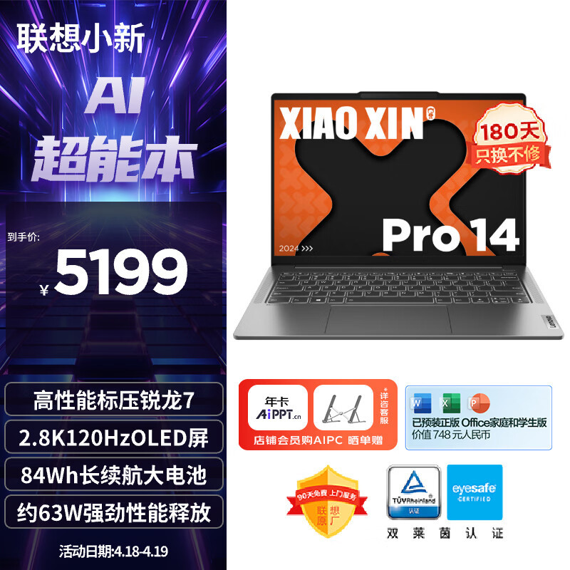 | nameOriginal | Lenovo notebook computer small new Pro14 AI super energy this high performance standard pressure Ruilong 7 8845H 14 English |