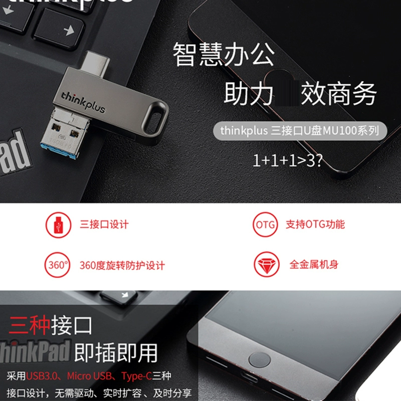 | nameOriginal | Lenovo thinkPadplus U disk MU100 three-head Type-C mobile phone and computer dual-purpose Android otg three interfaces |