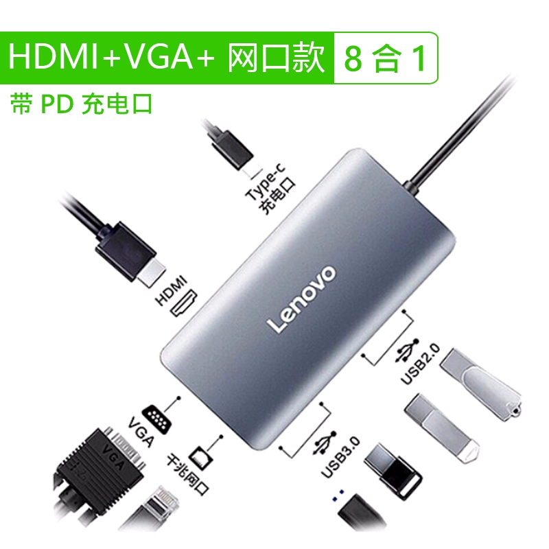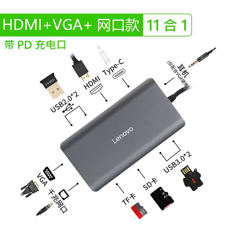 | nameOriginal | Lenovo Type-c docking station adapter HDMI VGA USB3.0 PD network port 4K HD suitable for Apple Huawei computer converter splitter hub expander extension cable |