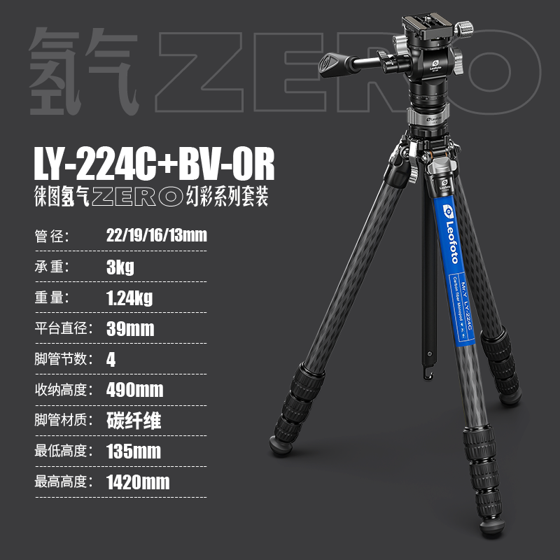 leofotoLY-224C hydrogen ZERO fantasy color series portable carbon fiber camera photography tripod
