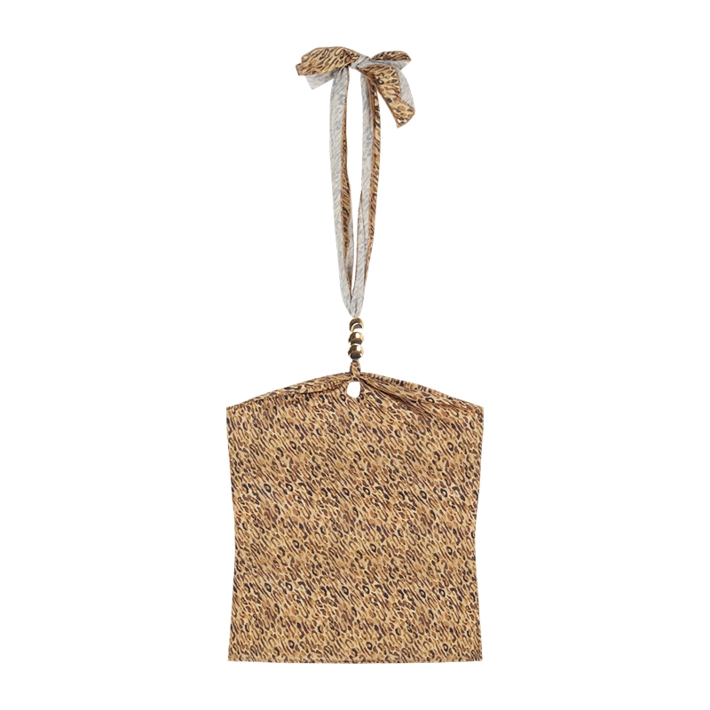 Leopard print hollow chiffon slim fit outer top halter neck