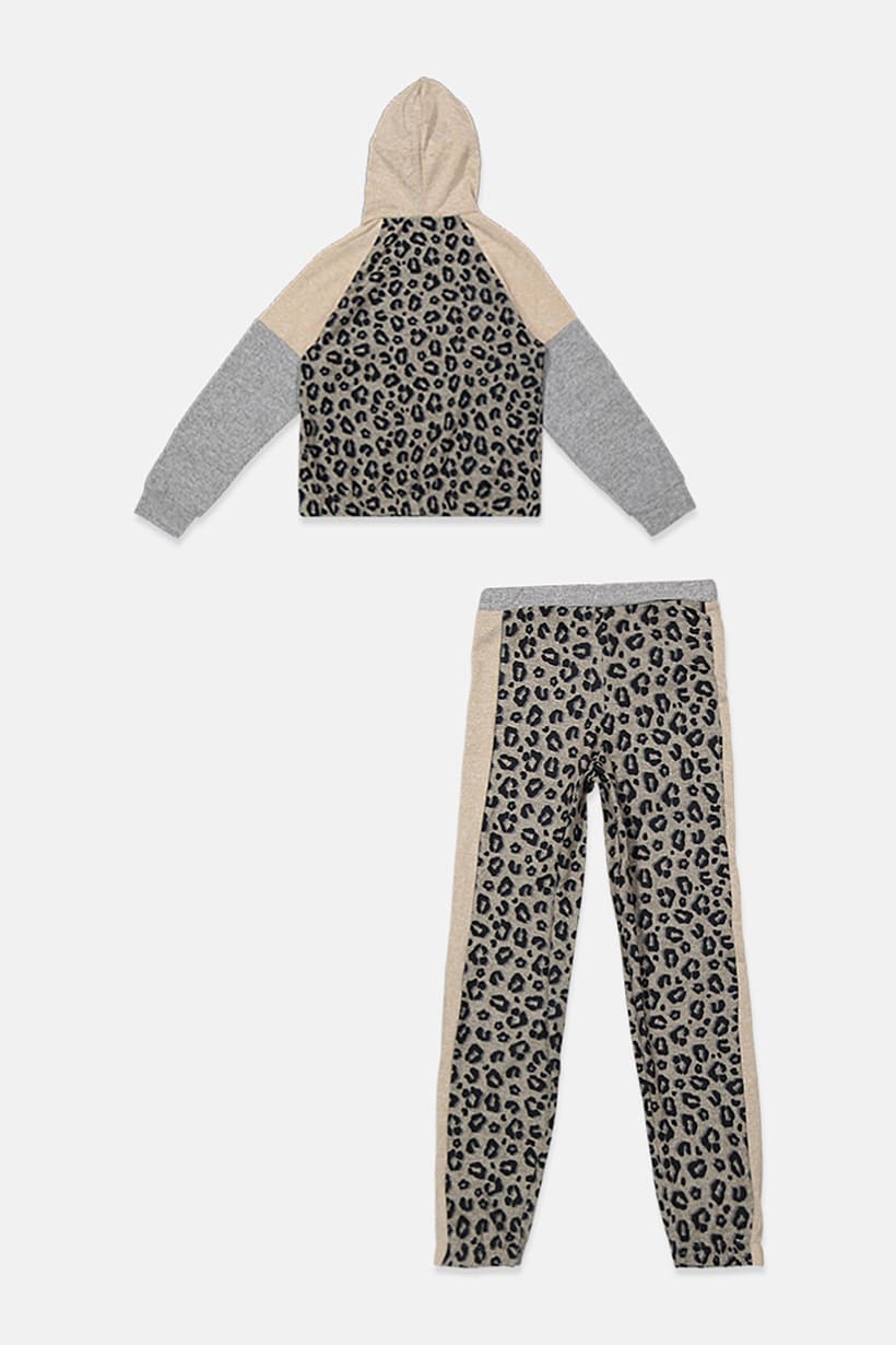 | descriptionOriginal | Care : Machine washable, Ideal For : Girls, Types of Neckline & Collar : Hood, Types of Sleeve : Longsleeve, Bottom Closure : Elastic waistband, Disclaimer : Product color may slightly vary due to photographic lighting sources or your monitor settings., Fabrics : 95% Polyester, 5% Spandex, Occasion : Homewear, Pattern & Print : Animal print, Types of Closures : Pullover, Color Family : Tan, |