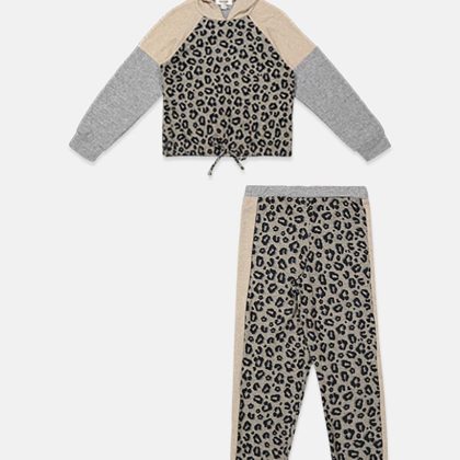 | descriptionOriginal | Care : Machine washable, Ideal For : Girls, Types of Neckline & Collar : Hood, Types of Sleeve : Longsleeve, Bottom Closure : Elastic waistband, Disclaimer : Product color may slightly vary due to photographic lighting sources or your monitor settings., Fabrics : 95% Polyester, 5% Spandex, Occasion : Homewear, Pattern & Print : Animal print, Types of Closures : Pullover, Color Family : Tan, |