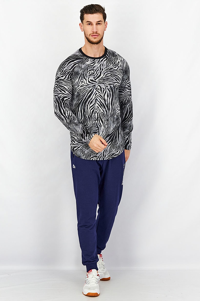 | nameOriginal | Men Crew Neck Leopard Print Long Sleeve T-shirt, Black/Grey |