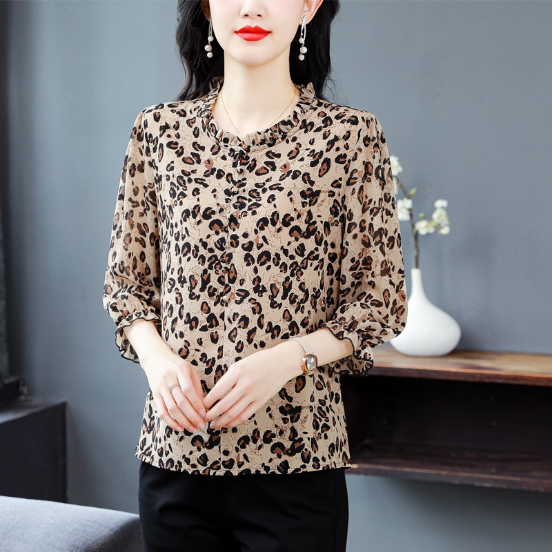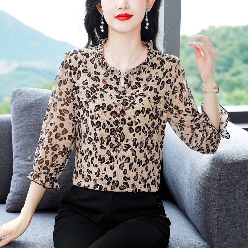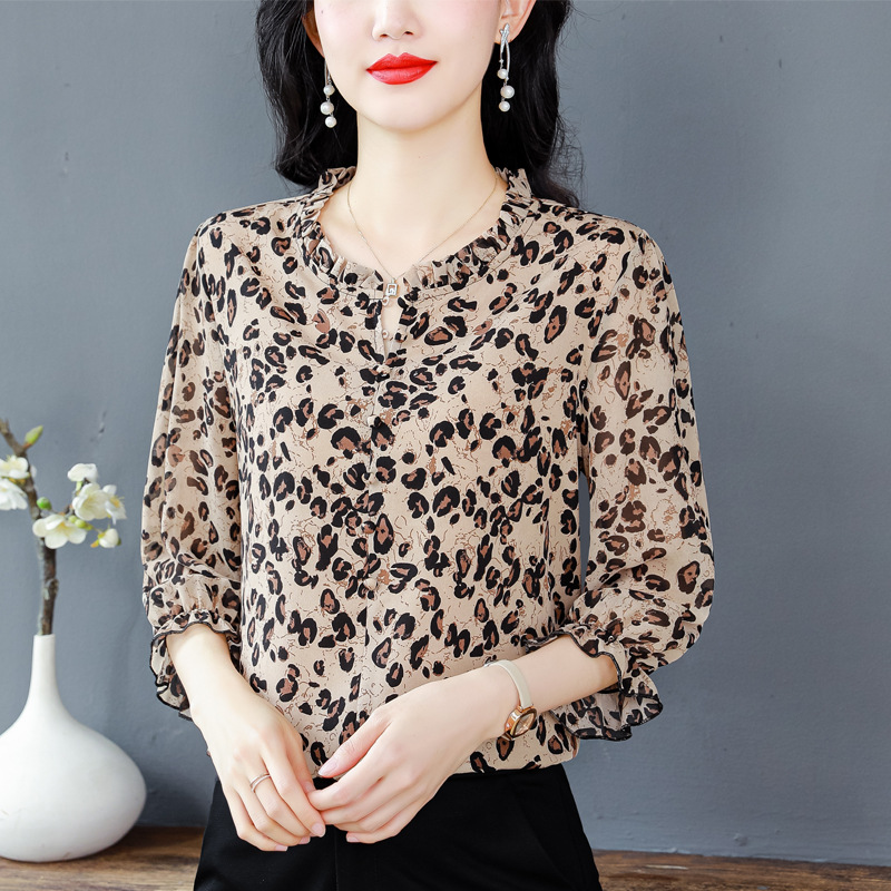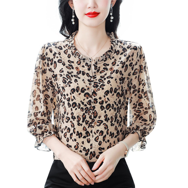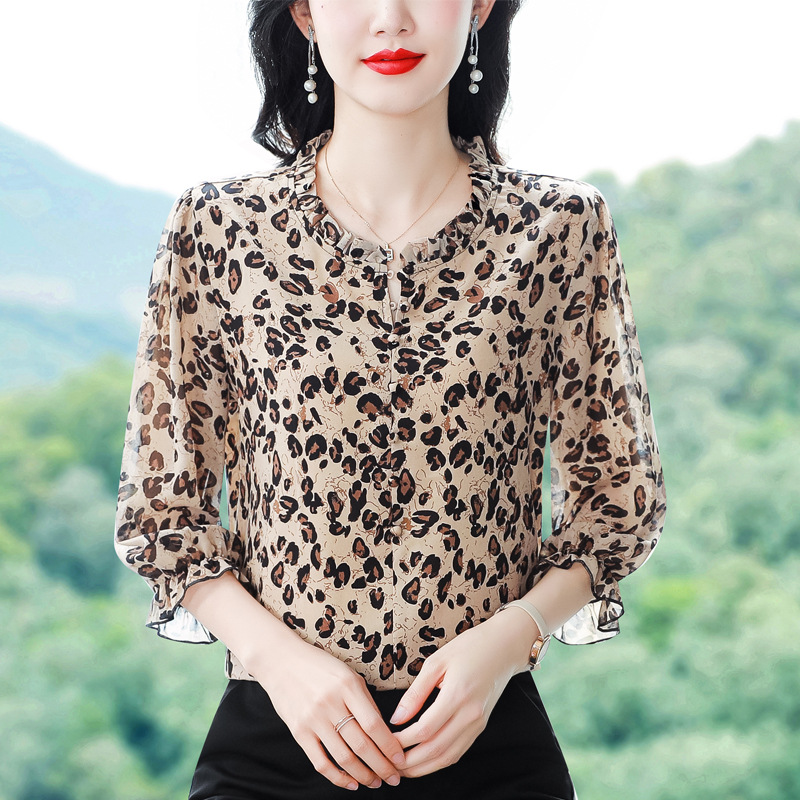 | nameOriginal | Leopard Print Shirt Women's 2024 Summer New Fashion Western-style Wood Ear Stitching Age-reducing Seven-point Sleeve Top Trendy |