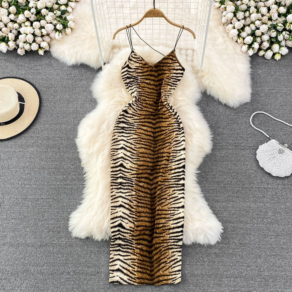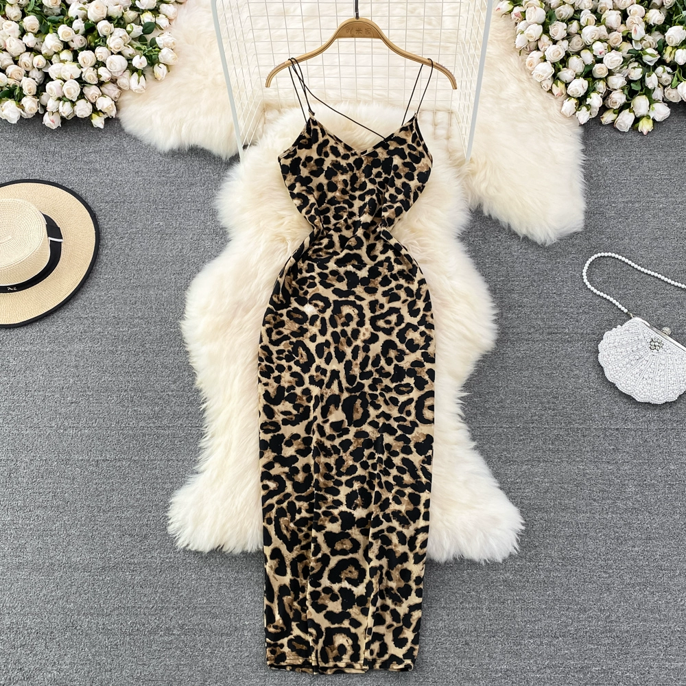 | nameOriginal | Leopard print slim-cut low-cut V-neck backpack hip suspender skirt |