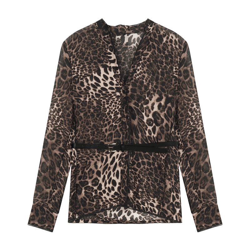 | nameOriginal | Leopard print v-neck long-sleeved loose sun protection chiffon shirt |