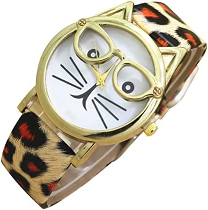 Women Watch – Leopard Wristwatch Novelty Cute Watch Cartoon Lovely Kawaii Watch Pu Leather Strap Watch Quartz Watch