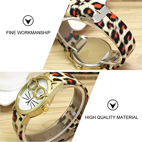 Leopard-printed Quartz Wristwatch for Women with Cute Cartoon Design and PU Leather Strap.
