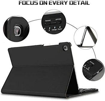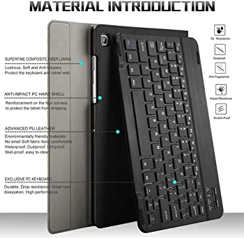 Lesgos Keyboard Case for Samsung Galaxy Tab S5e T720/T725 10.5 is a slim and shockproof PU case with a detachable wireless keyboard that has auto sleep/wake feature.