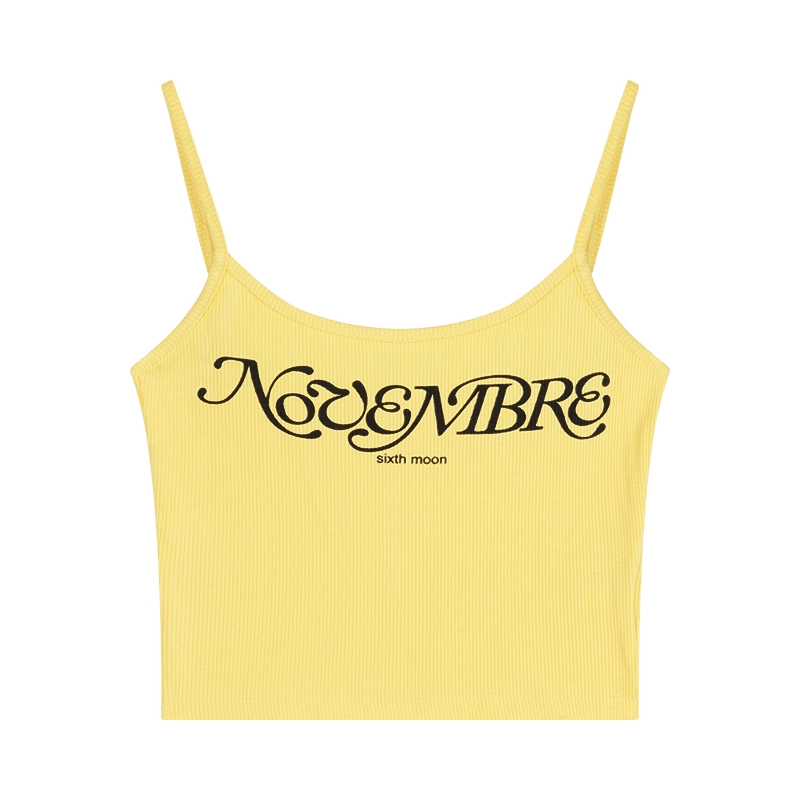 | nameOriginal | Letter print stacked slim-fitting yellow sleeveless suspender belt |