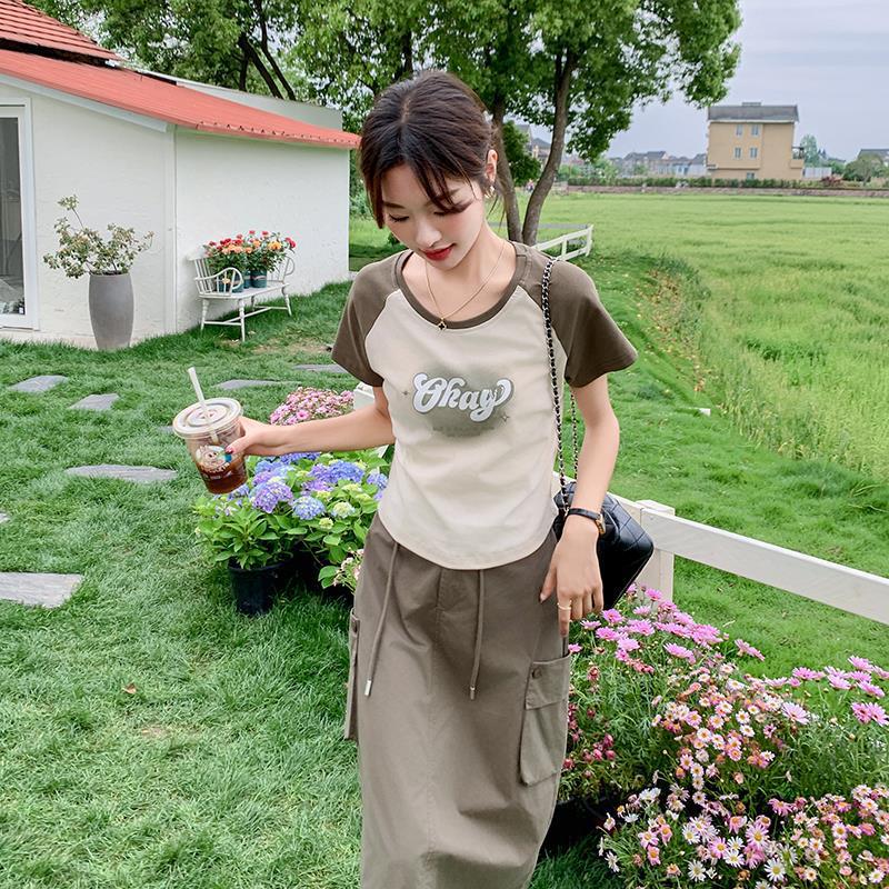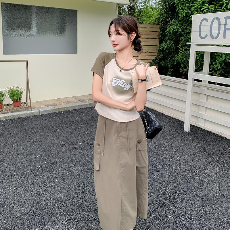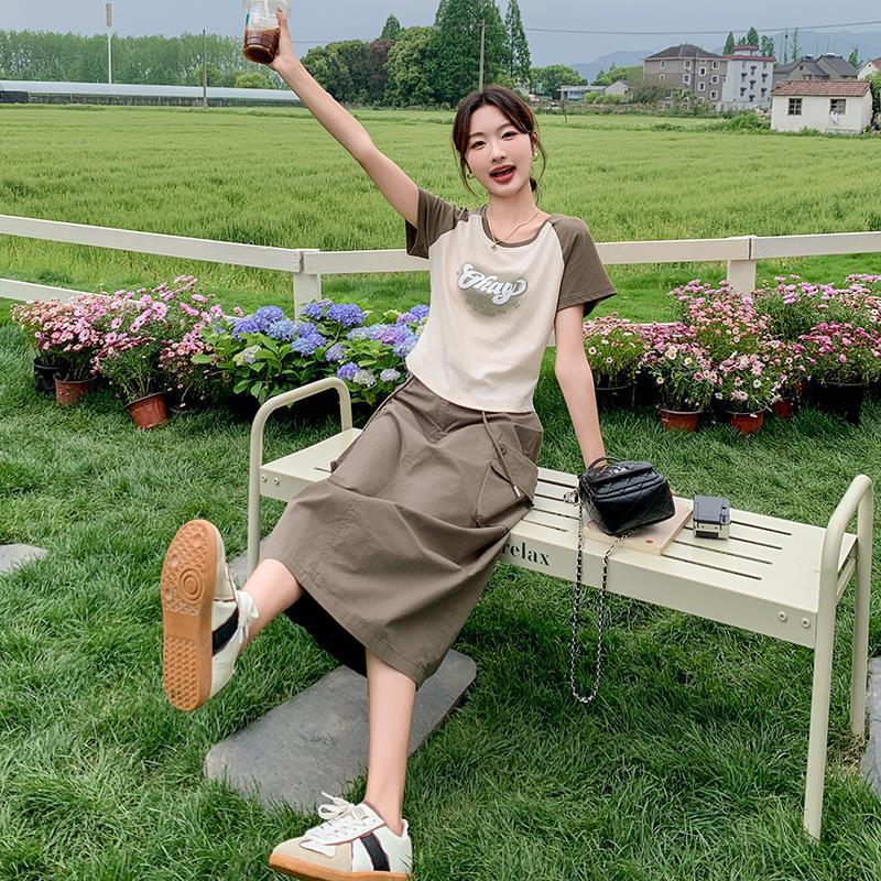 | nameOriginal | Letter Print T-Shirt Dress Women's 2024 Summer New Fashion High Waist Slimming Elegant Age-reducing Two-piece Set |