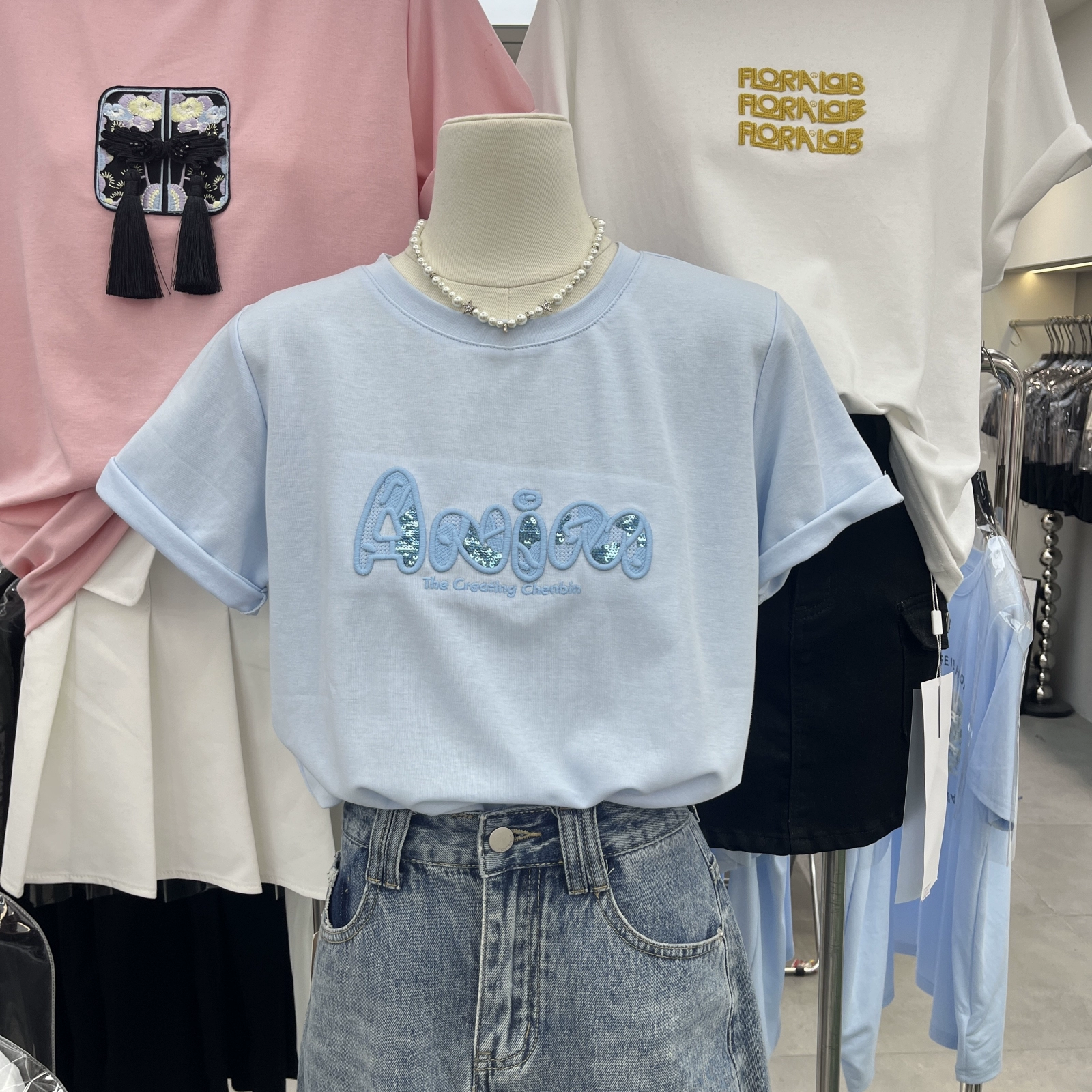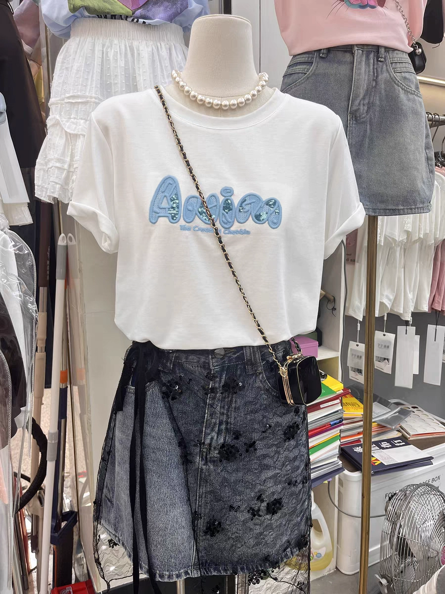 Letter printing casual cotton round neck short -sleeved T -shirt