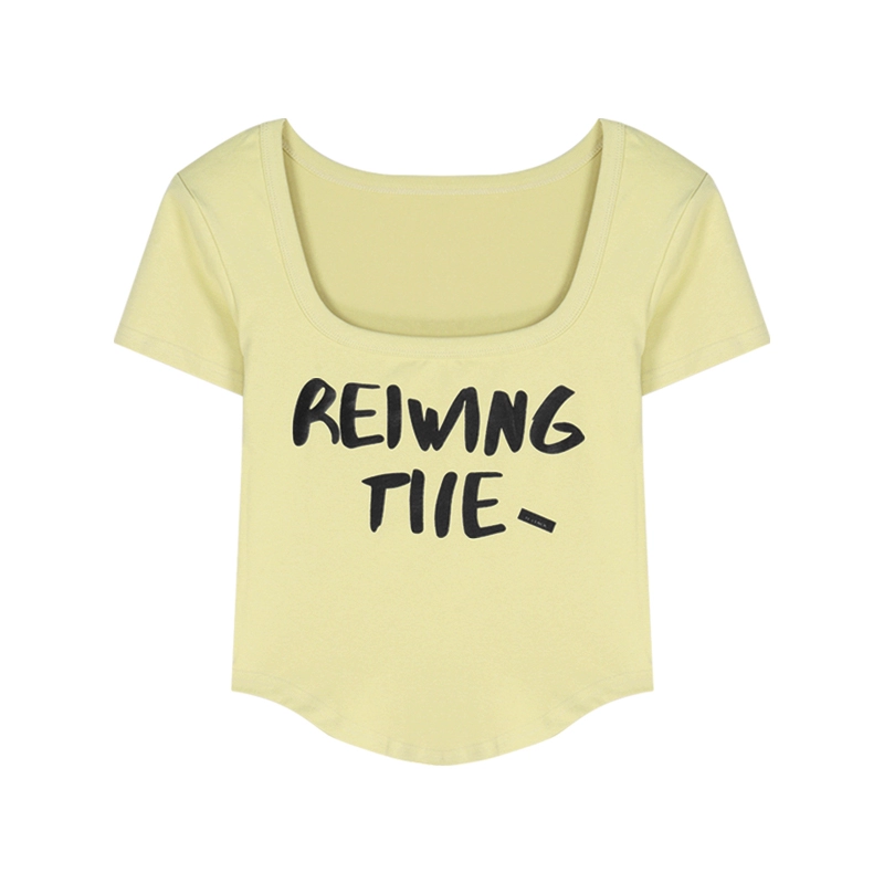 | nameOriginal | Letter printed front shoulder U-neck slim and versatile short-sleeved T-shirt |