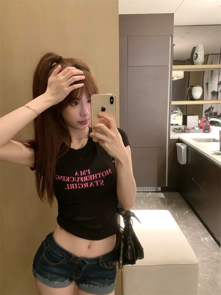 | nameOriginal | Letter printed right shoulder summer slim round neck short sleeves |