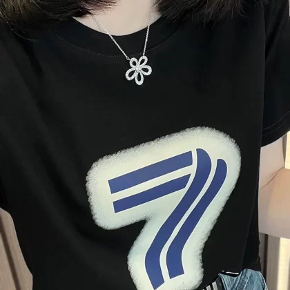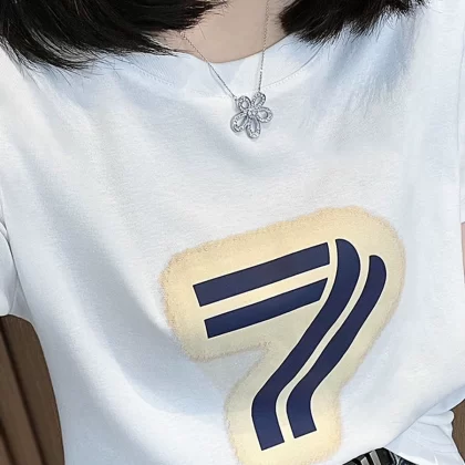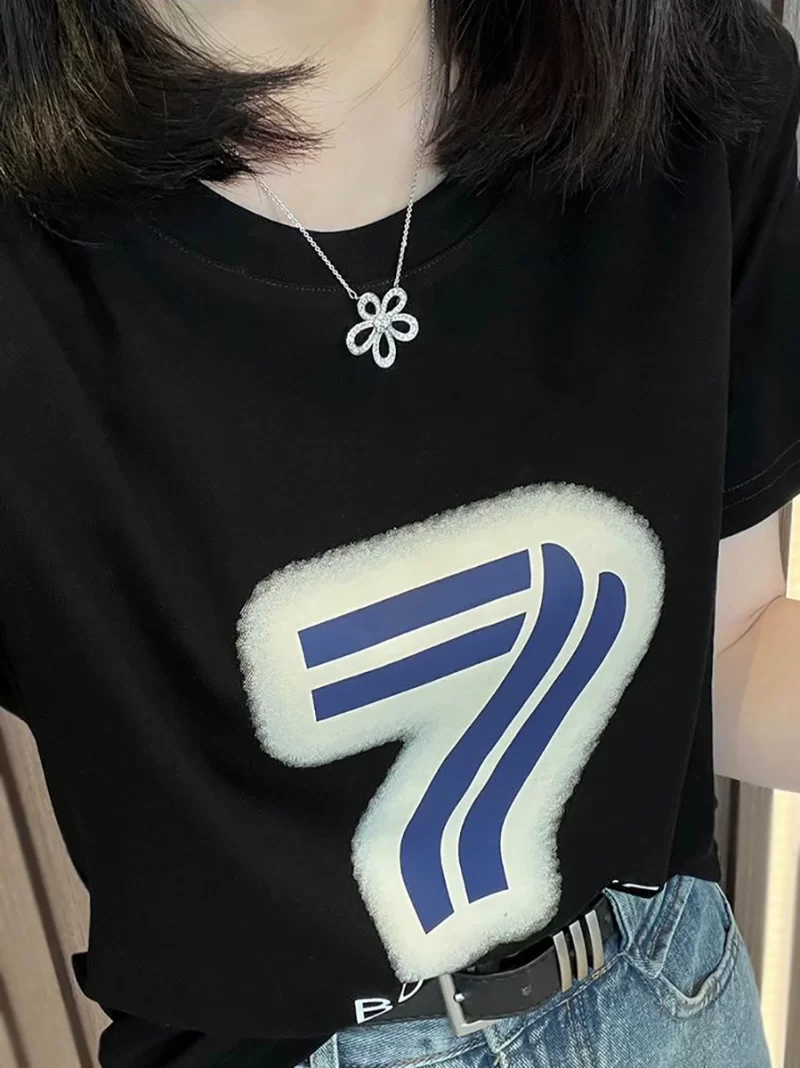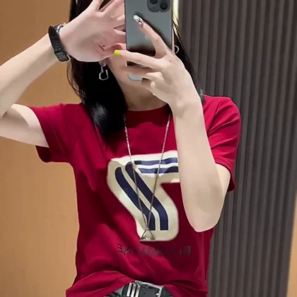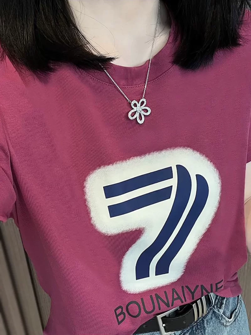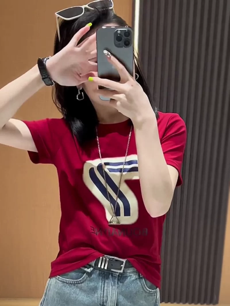 | nameOriginal | Letter printed round neck burgundy short-sleeved T-shirt for women 2024 summer slim casual foreign style versatile top ins trend |