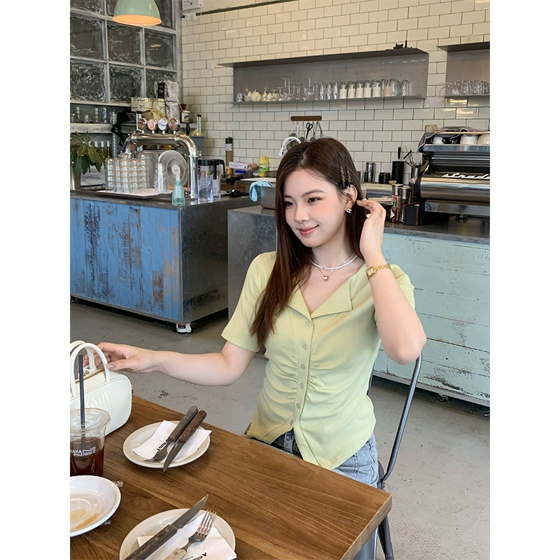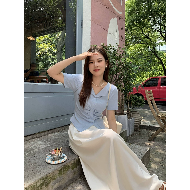 | nameOriginal | Li Xiaosha Korean style waist-cinching summer slim-fitting shoulder top |