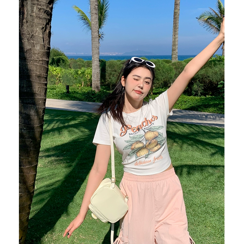| nameOriginal | Li Xiaosha Slightly Fat Large Size American Hot Girl Print Round Neck Short Sleeve T-Shirt Women's Summer Short Right Shoulder Slim Top |