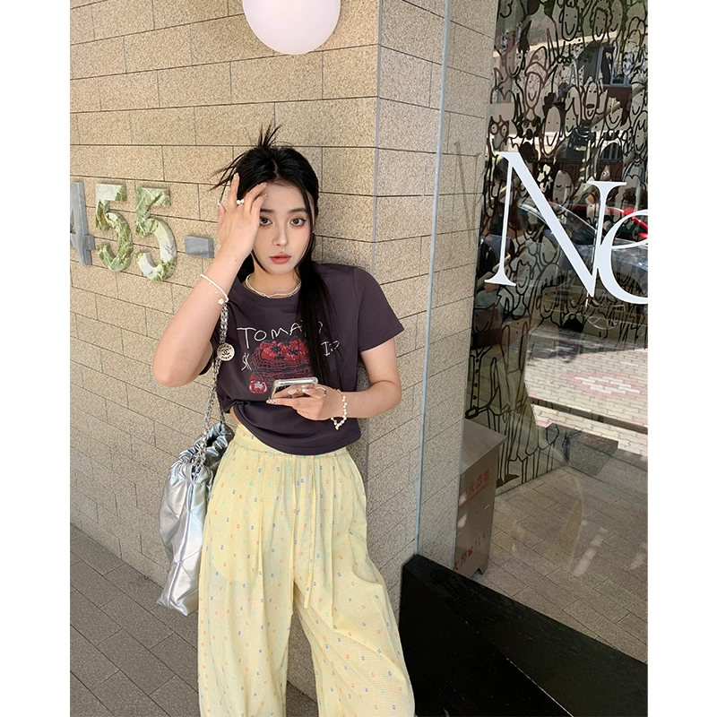 | nameOriginal | Li Xiaosha slightly fat plus size American hot girl embroidery printed short-sleeved T-shirt for women summer right shoulder short round neck top |