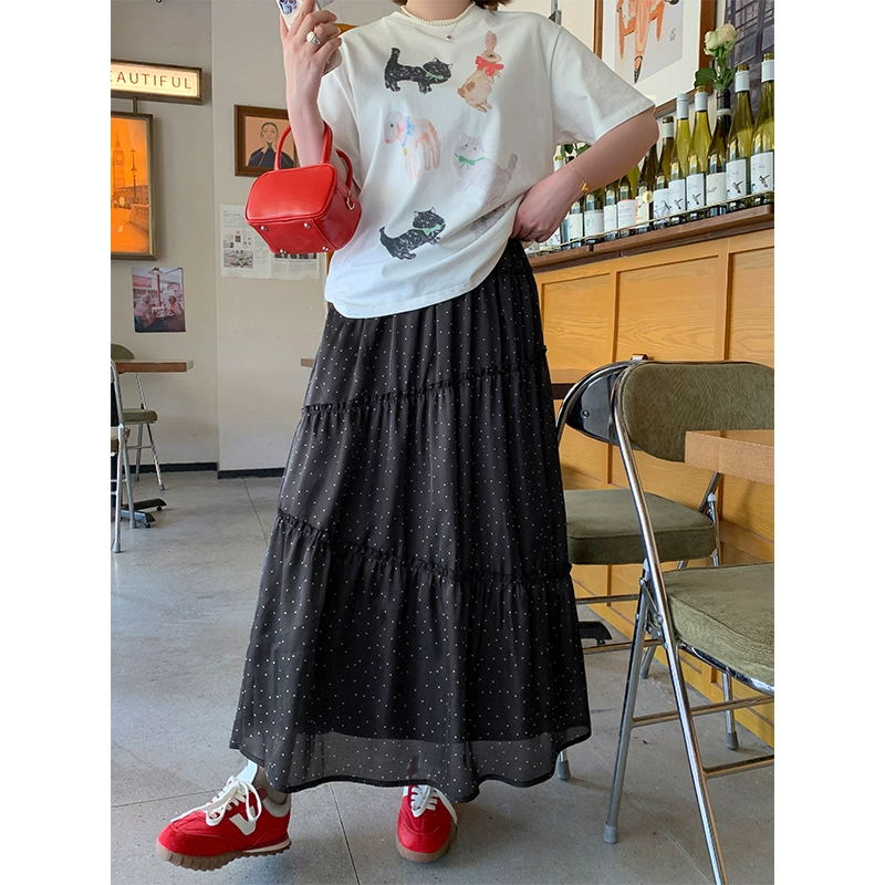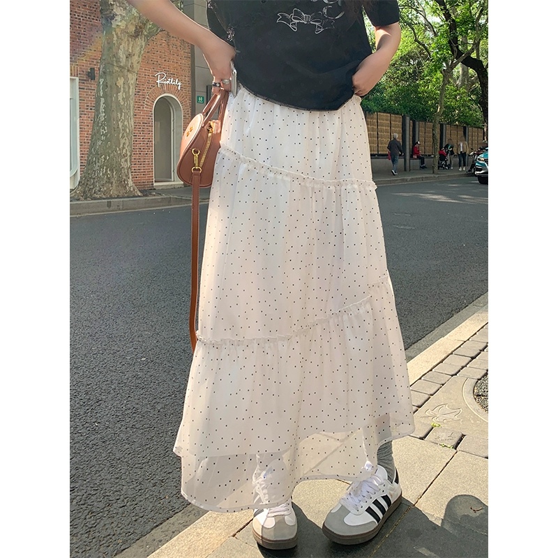 | nameOriginal | Li Xiaosha slightly fat plus size white high waist polka dot cake skirt women summer slimming small A-line long skirt |