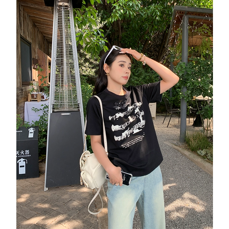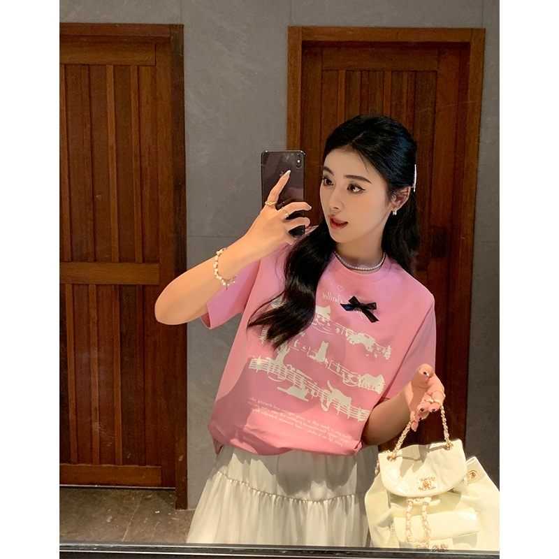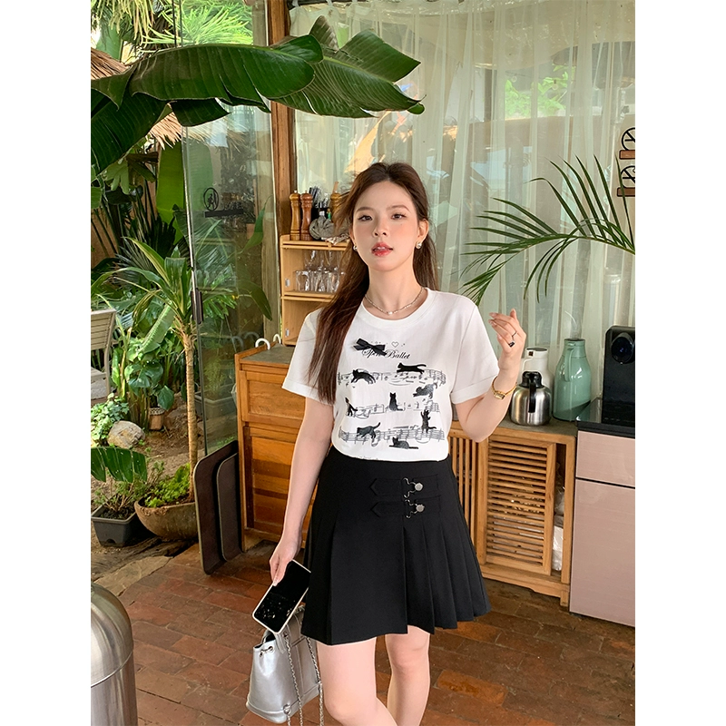 Li Xiaosha slightly fat white casual printed short-sleeved T-shirt