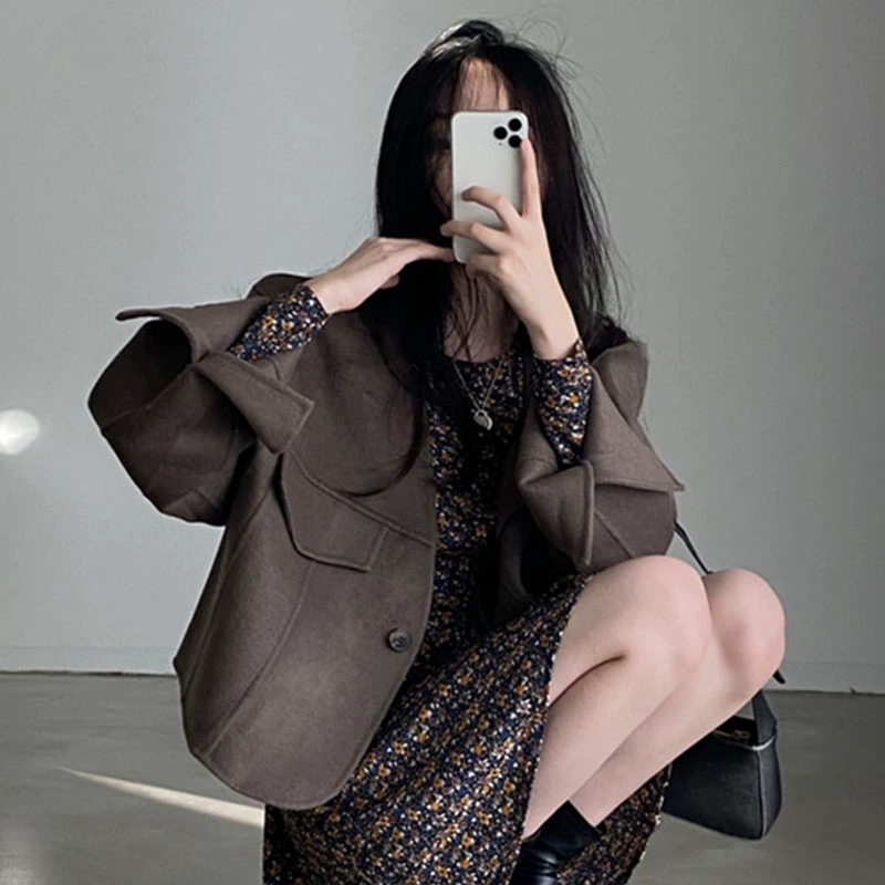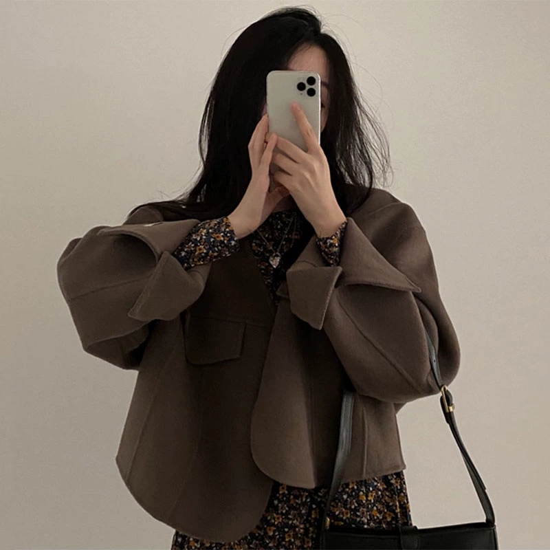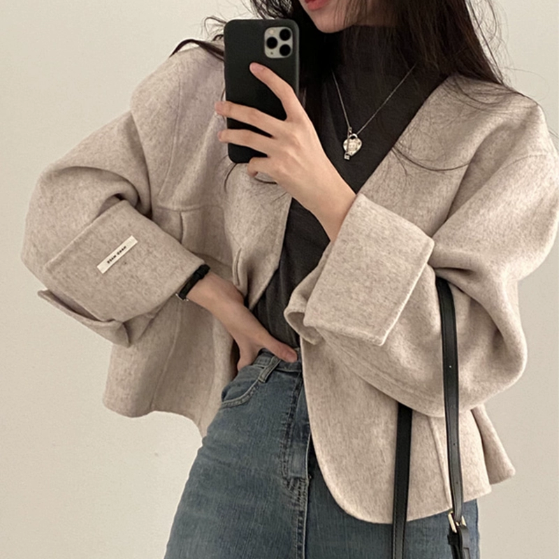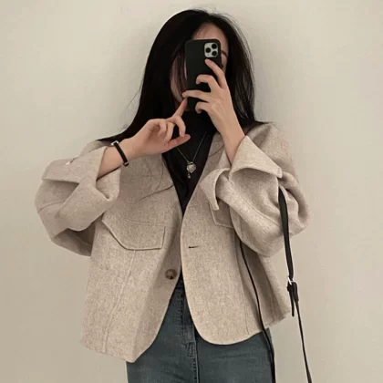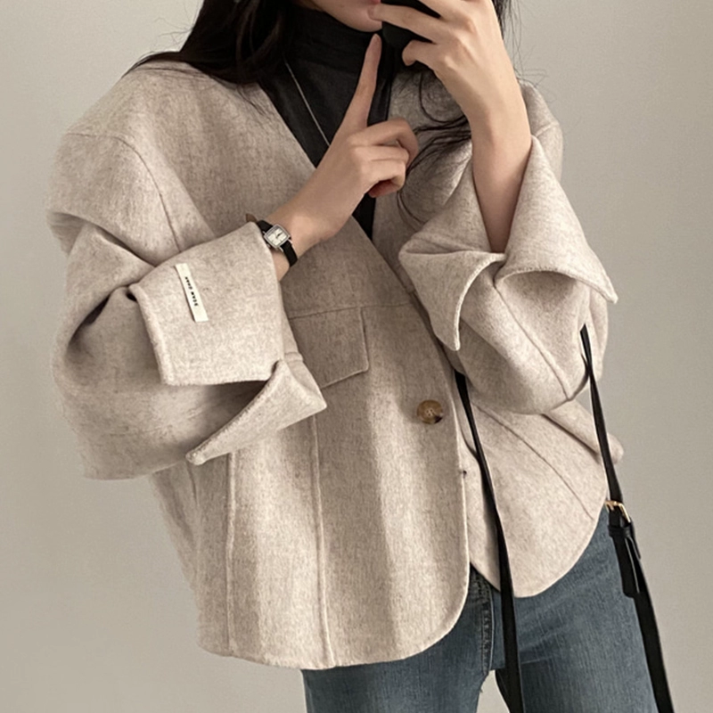 | nameOriginal | Liangliangjia temperament retro V-neck one-button loose and versatile casual roll-sleeved short woolen coat for women |