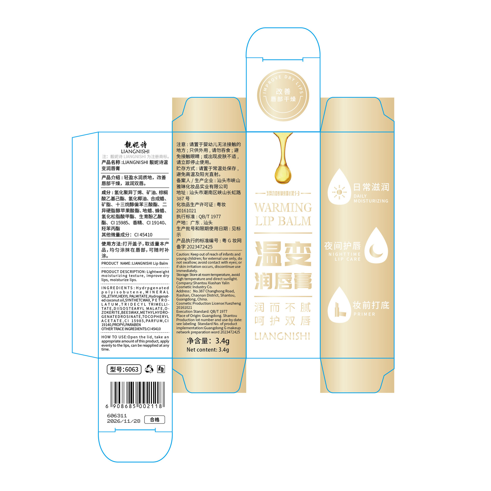 | nameOriginal | Liangnishi temperature change moisturizing lip balm hydrating moisturizing fade lip lines Anti-cracking lip care color changing lip balm |