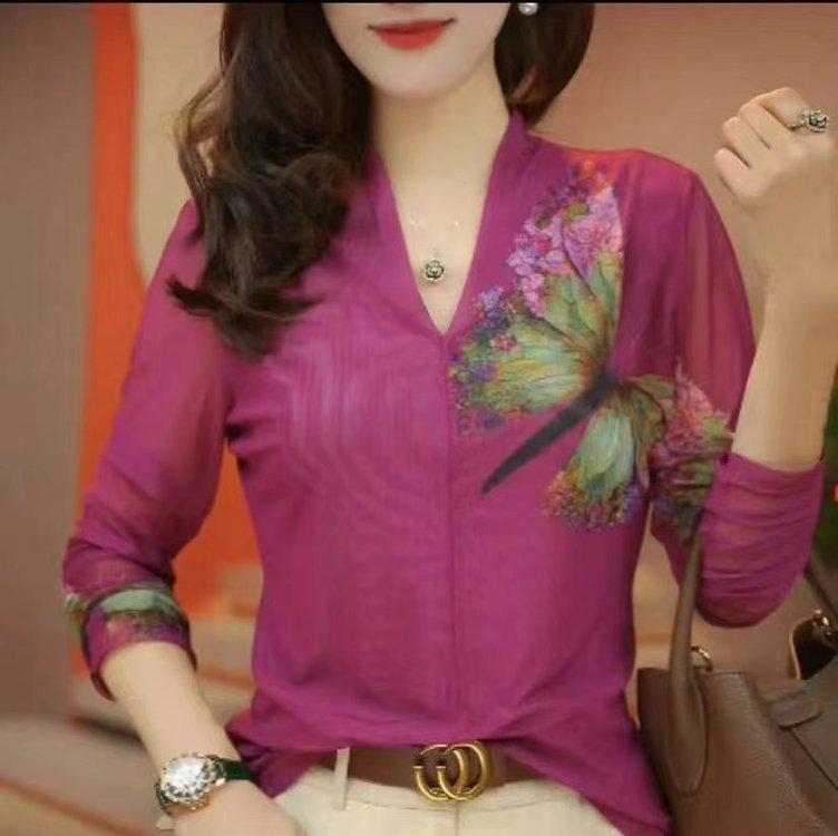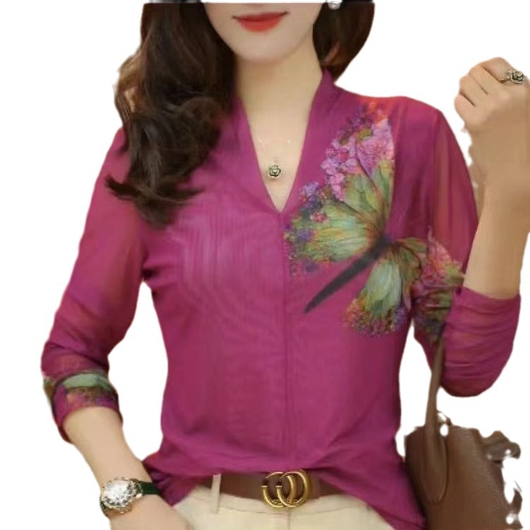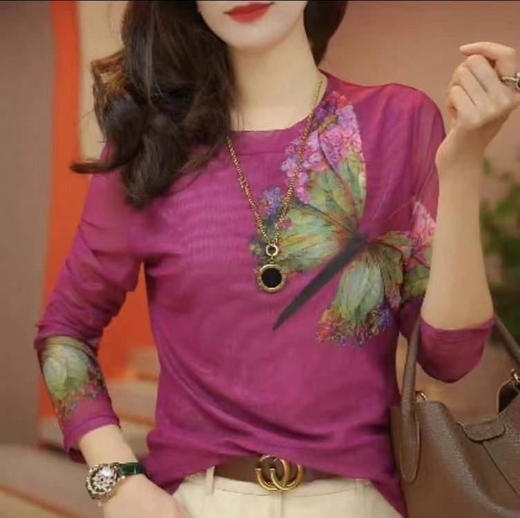| nameOriginal | Lianzidie spring new elastic mesh long sleeve women's all-match bottoming shirt high-end mother meat covering printed top |